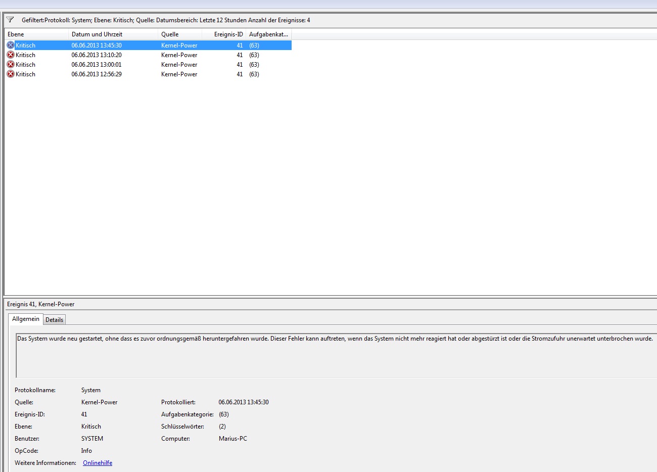 ich hatte zunächst ein Problem mit Freezes, anscheinend scheint das von der SSD verursacht worden zu sein, aber mal abwarten ob die nochmal auftauchen. Hab gestern extra die Systemplatte wieder durch ne HDD getauscht, weil ich dachte der andere Fehler(PC piept wie blöd Bildschirm wird schwarz und nix passiert mehr oder der Bildschirm wird auch schwarz aber nix piept und der pc macht das geräusch als würde er neu starten wollen). Heute habe ich den angeschaltet, pc wurde dreimal hintereinander schwarz, zeimal mit piepen und einmal ist er einfach so schwarz geworden, wie in der Klammer beschrieben. Momentan scheint es wieder zu gehen, aber ich weiß nicht was ich machen soll. Irgendwas macht Probleme -.-