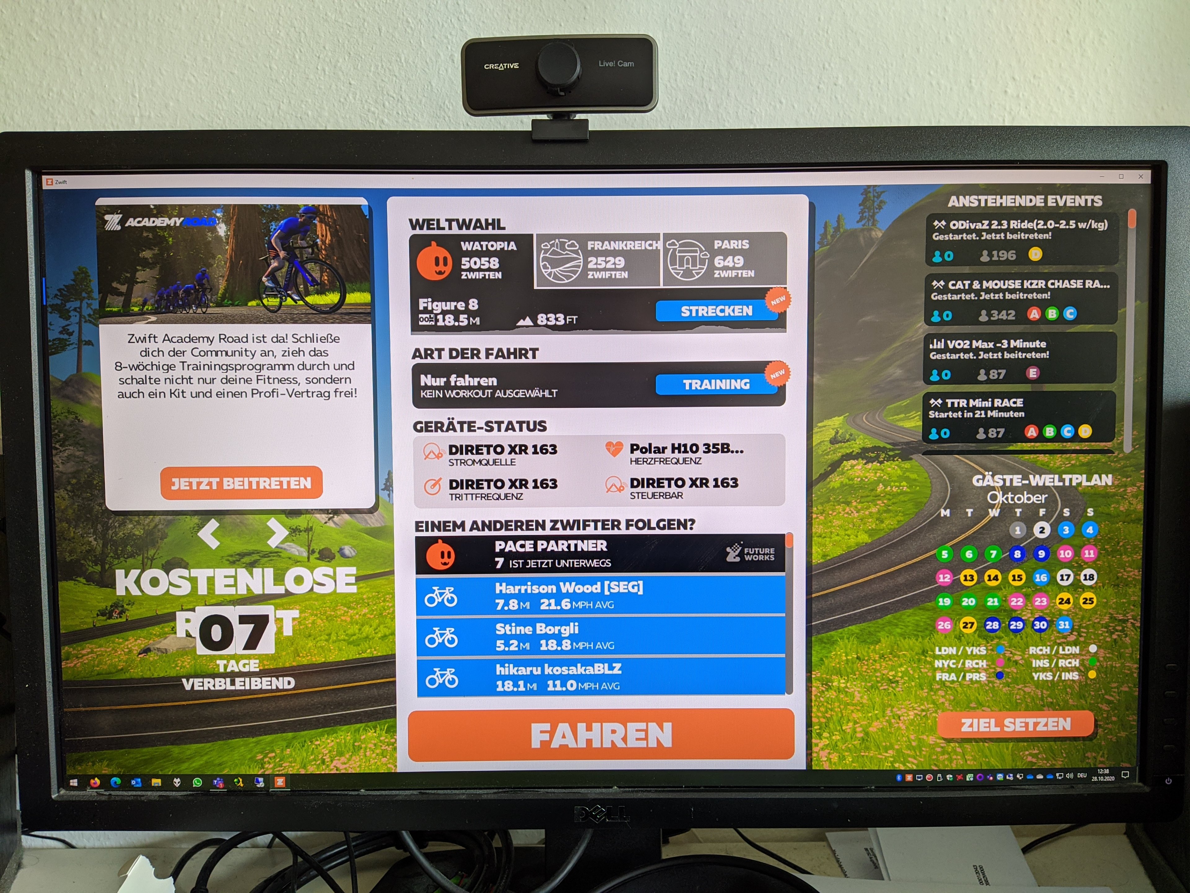 Es geht spezifisch darum, dass mein Rennrad mit dem Smarttrainer verbunden ist, was man mit der App Zwift fährt. Zwift ist eine App wo man virtuelle Rennen fährt. Die Zwift App verbindet sich mit dem Trainer und dem Herzmesser entweder über Bluetooth oder Ant+.