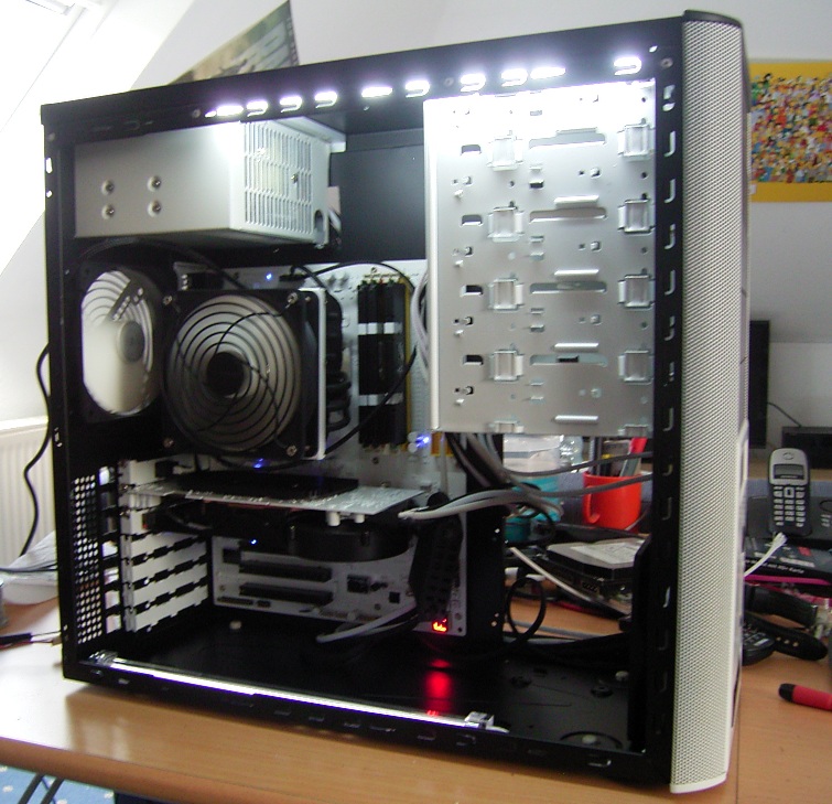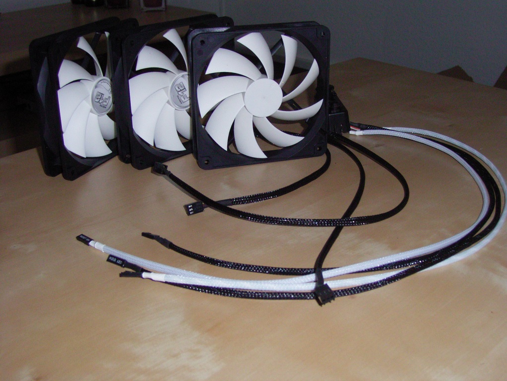Nun hab ich 3 weiße Lüfter, 2 weiße Kaltlicht Kathoden und schwarzen und weißen sleeve von MDPC-X bekommen. Ein neues gebrauchtes Netzteil ist auch schon hier welches nun aber noch modifiziert und lackiert werden muss.