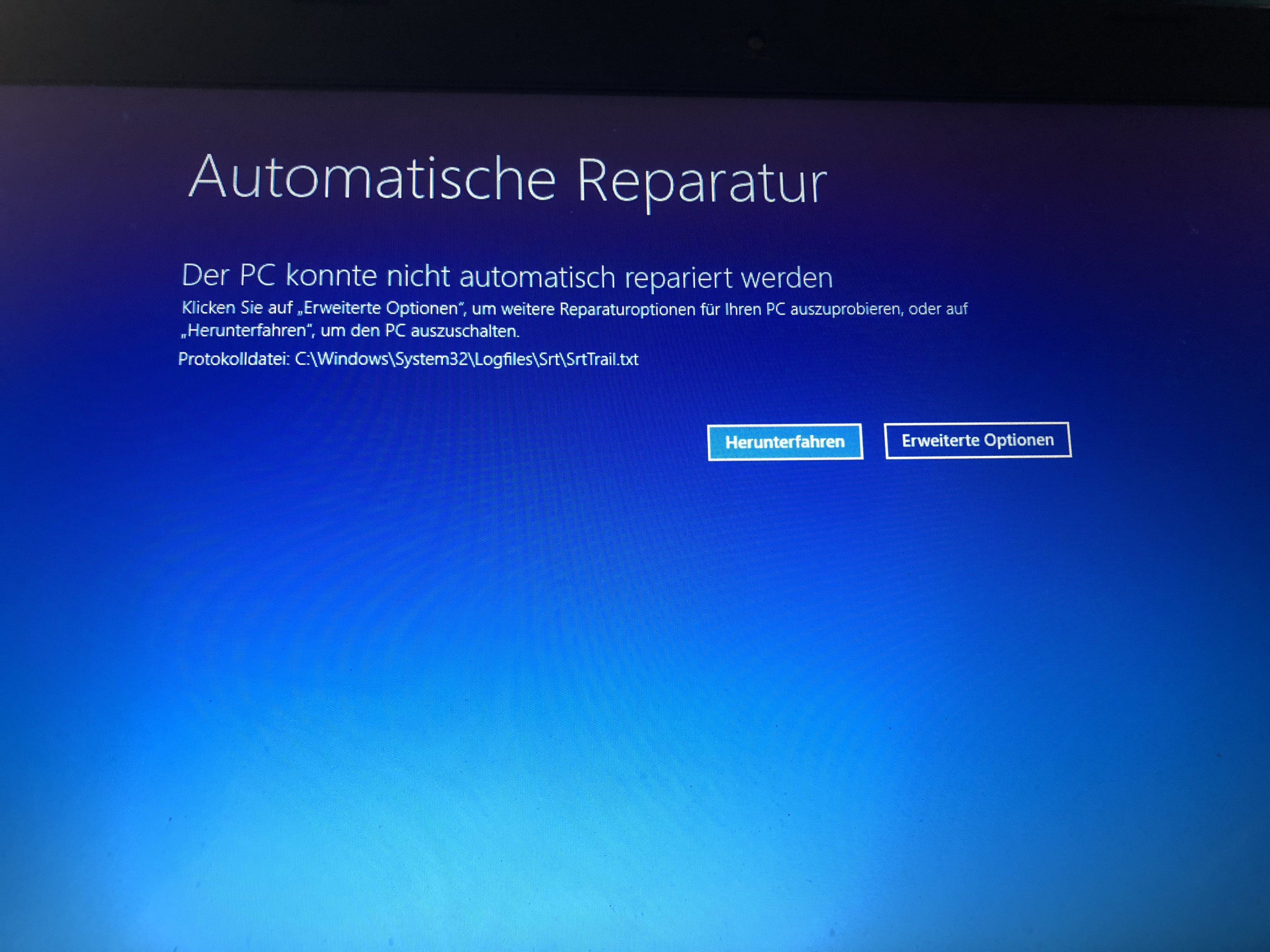 Nach der gescheiterten automatischen Reparatur kommt der blaue Bildschirm wo ich auswählen kann :