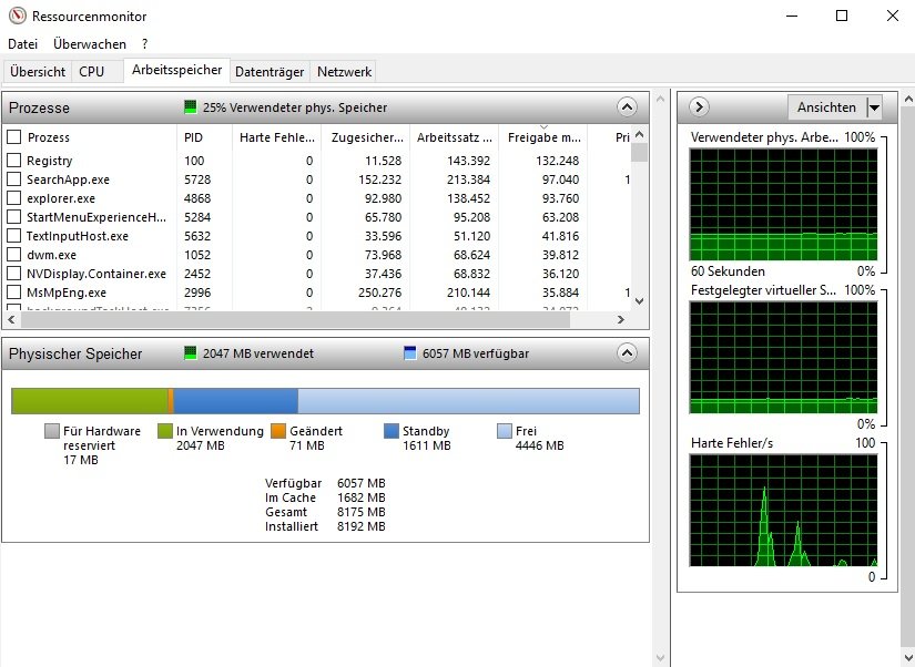 Jetzt zurzeit habe ich keine Abstürze mehr und auch nicht "Windows muss herunterfahren werden", aber ich sehe das von 8GB Arbeitsspeicher, die ich habe 4113 MB für Hardware reserviert wird und wenn ich jetzt mein Internetbrowser starte, dann habe ich nur 200 MB Arbeitsspeicher frei, wenn ich jetzt mehrere Tabs öffne, dann wird das immer weniger, also dann habe ich so gut wie kein Arbeitsspeicher mehr frei.