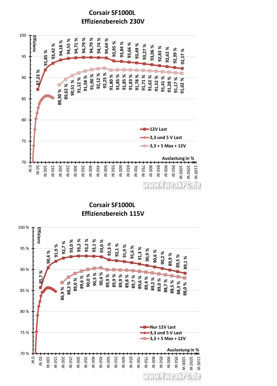 Also mein ehemaliges Corsair SF1000 hatte die beste Effizienz bei ca. 40%-60% der Nennleistung und wenn ich die Diagramme anderer Hersteller noch richtig im Gedächtnis habe, ist das bei vielen so. D.h. hat man ca. 400-600 Watt verbrauch, sollte man schon in etwa 800-1000 als Versorgung einplanen, wenn man es Effizient und sicher haben möchte.kachiri schrieb:und in Bezug auf das Netzteil sogar die Effizienz negativ beeinflusst wird... Auch bei Platinum oder Titanium-Zertifizierungen.