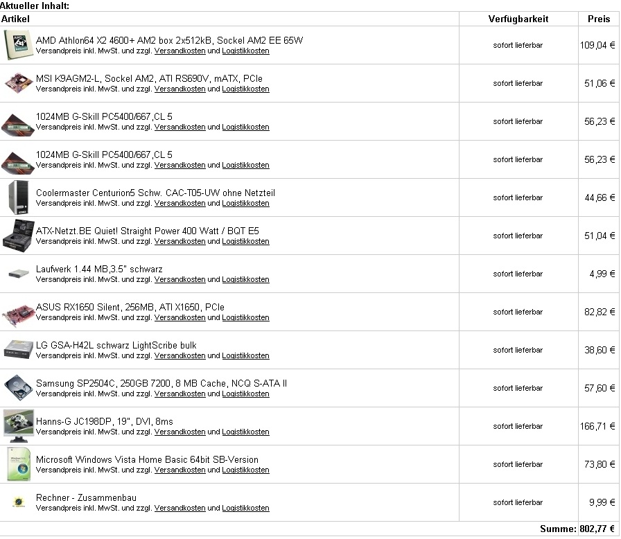 Versandpreis inkl. MwSt. und zzgl. Versandkosten und Logistikkosten Liefertermin unbekannt 90,81 € 1