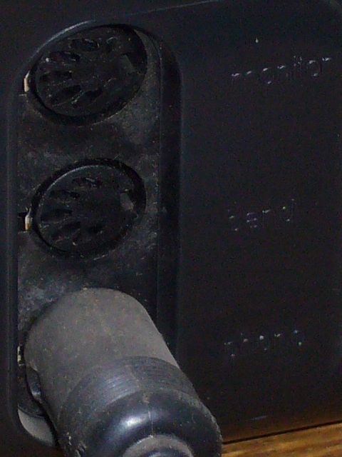 Hinten am Gerät sind 2 5-Pin Din-Stecker
