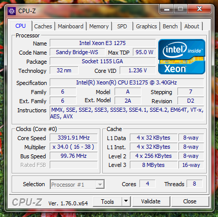 Intel(R) Xeon(R) CPU E31275 @ 3.40GHz