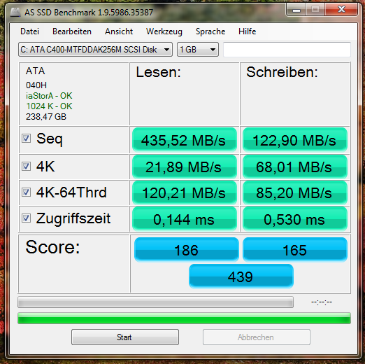 Das Betriebssystem (Win7 Prof.) läuft auf einer SSD 256GB