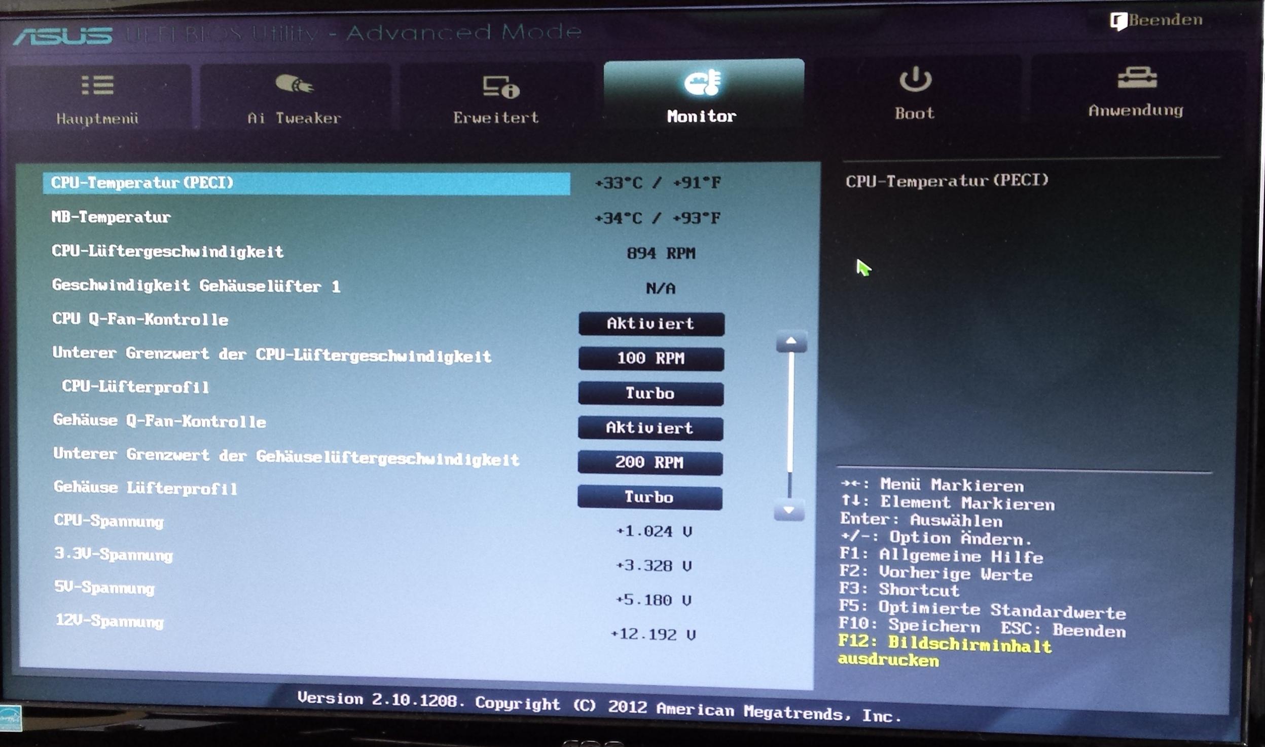 MotherBoard: (Nach dem neustart im Bios) --> 34 Grad C