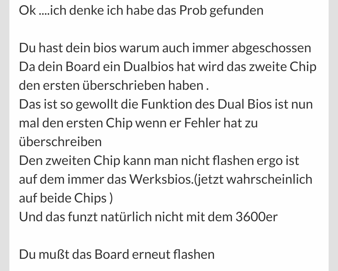 Ich mache das mit dem 2200g weil mir gesagt wurde meim bios wäre kaputt und ich kann mit dem 3600er nicht das backup bios benutzen weil er dafür zu neu ist und ich das bios erst flashen muss.