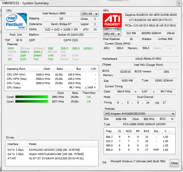 Wir haben den 4 GB Ram ausgetauscht und 2x4GB neu eingesetzt, wir haben die FP abwechselnd angehängt und Win erst auf einer dann auf der anderen versucht. Trotzdem war es dann so dass mir der Rechner jeden Tag ausgegangen ist und ich die Windowsstartreparatur laufen lassen musste.