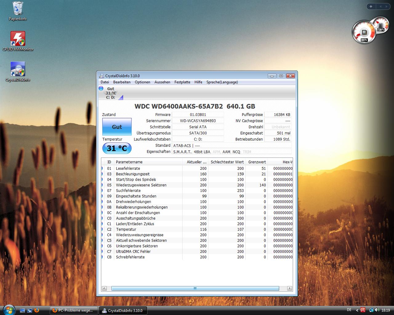Ich hab von Anfang an Probleme gehabt, die zwar sehr stören, aber mich den PC noch nutzen lassen. Dies ist auch der Grund weshalb ich nie konsequent genug versucht habe sie anzugehen.