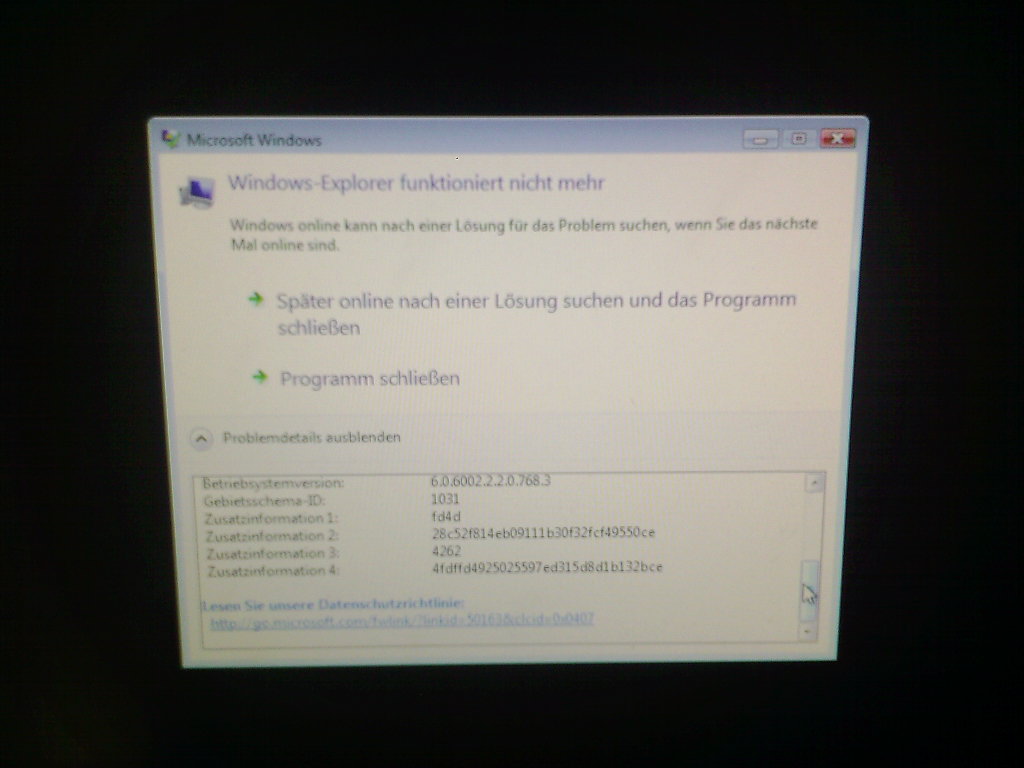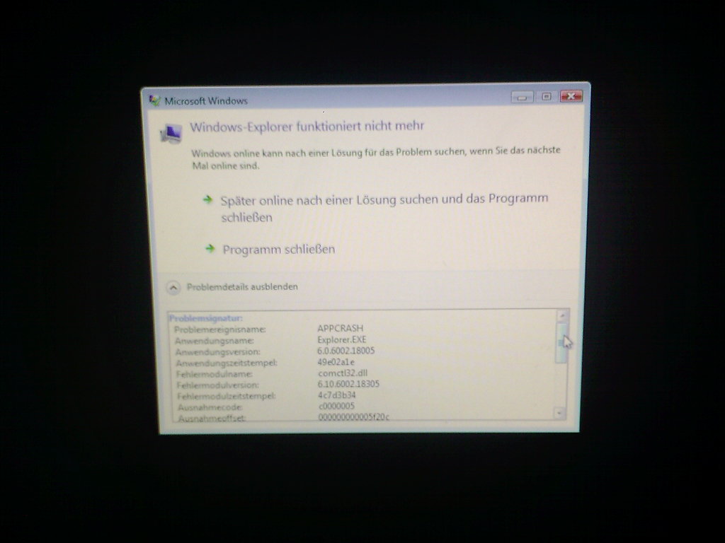 - Meldung: Programm funktioniert nicht mehr (etwa Explorer oder Firefox)