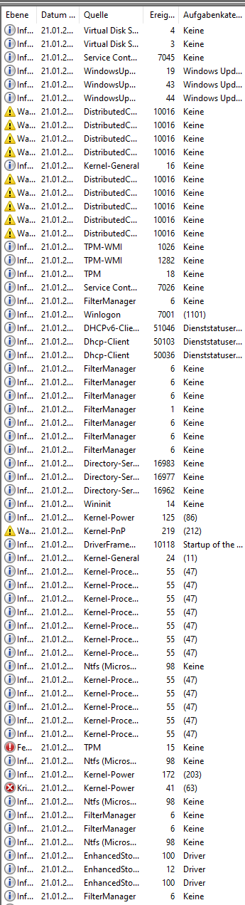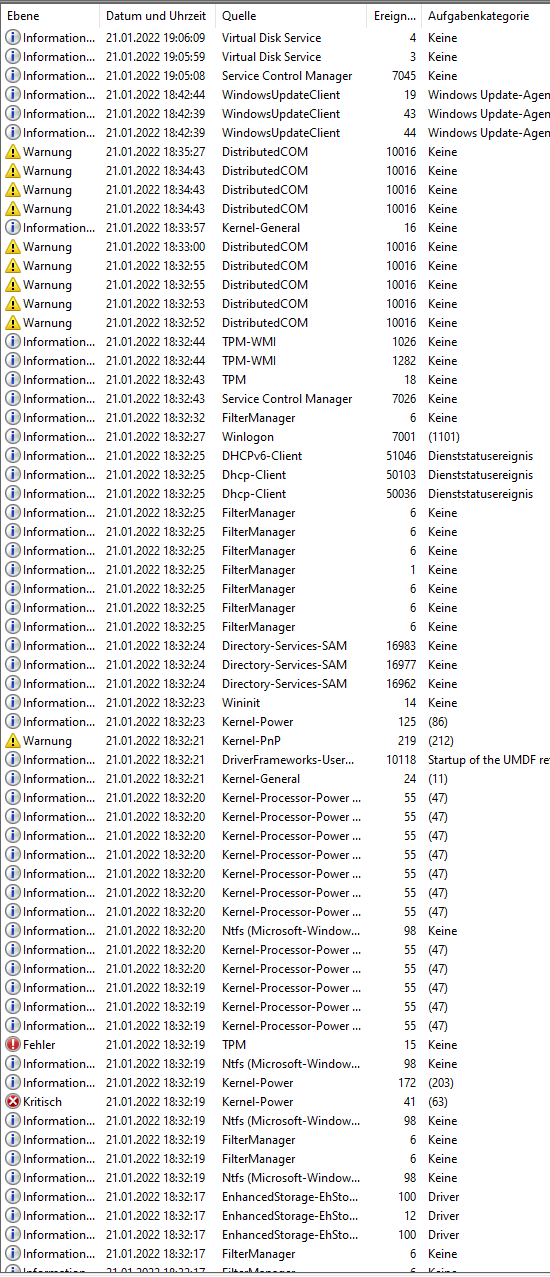 Vielleicht hilft das Ereignissprotokoll auch noch da ich leider nicht so viel Ahnung habe von den ganzen fehlern außer ich soll es per datei schicken sonst einfach schreiben, wusste jetzt nicht wie das funktioniert.