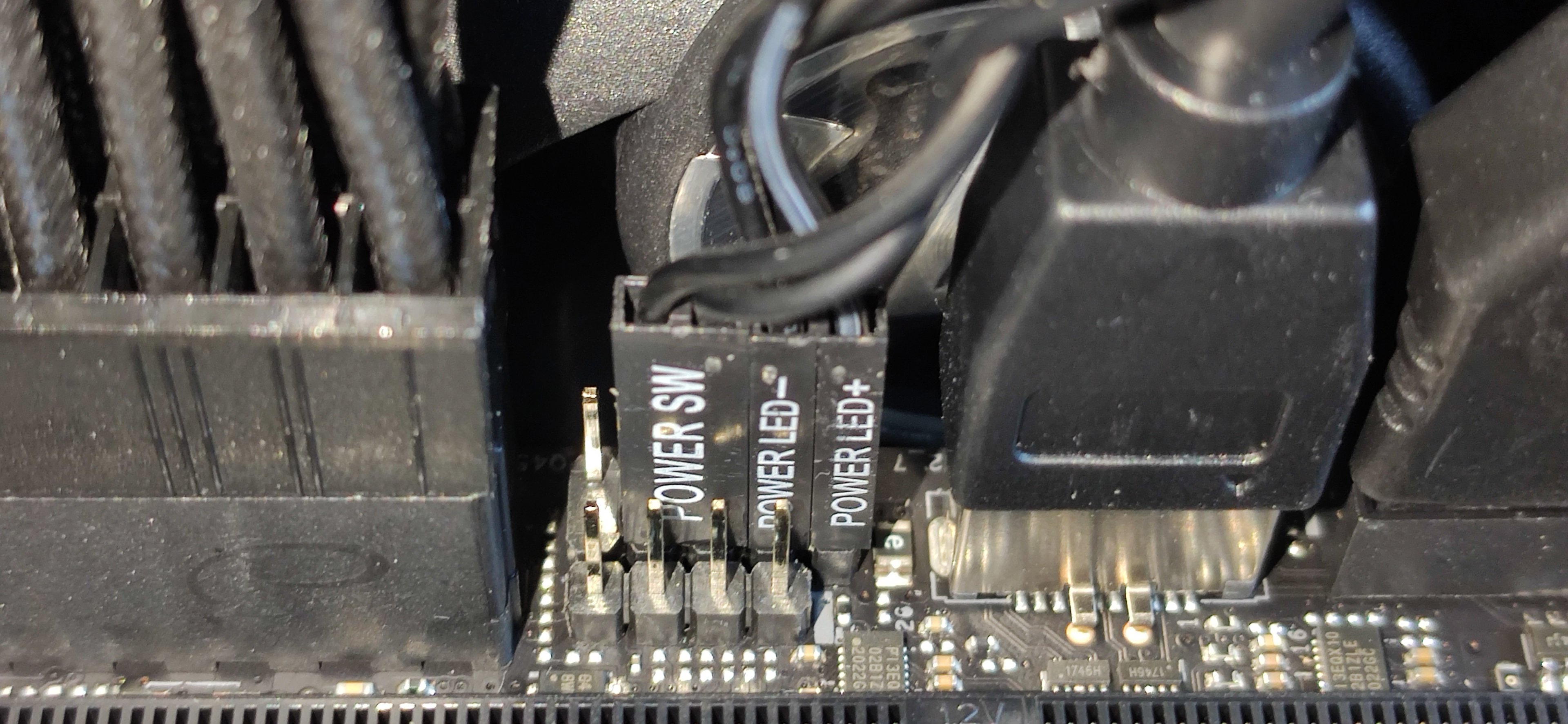 Ich bin mir generell nicht sicher, meiner Meinung sieht es so aus als würde der Stecker "Power LED+" in der Luft hängen. Einfach kontrollieren....