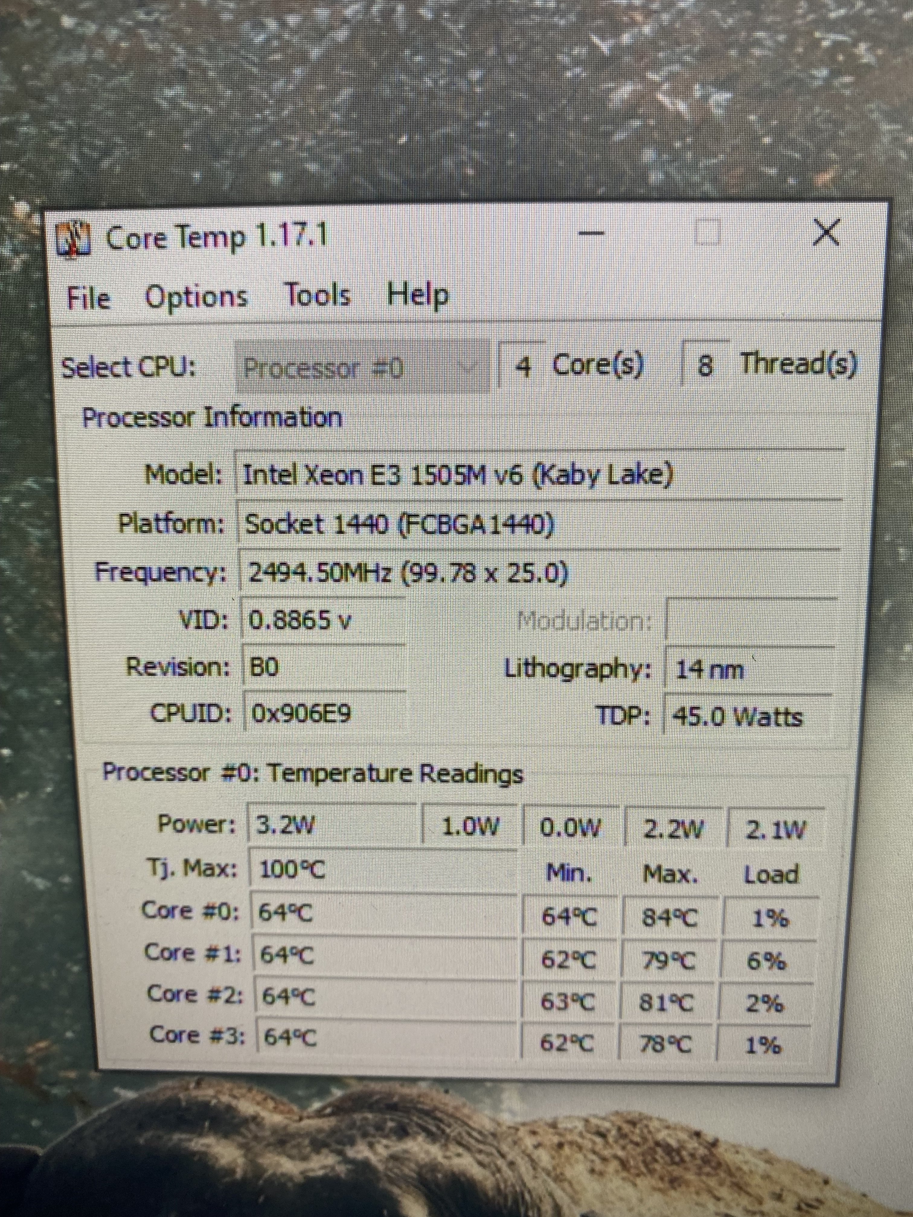 Processor: Intel(R) Xeon(R) CPU E3-1505M v6 @ 3.00GHz (8 CPUs), ~3.0GHz