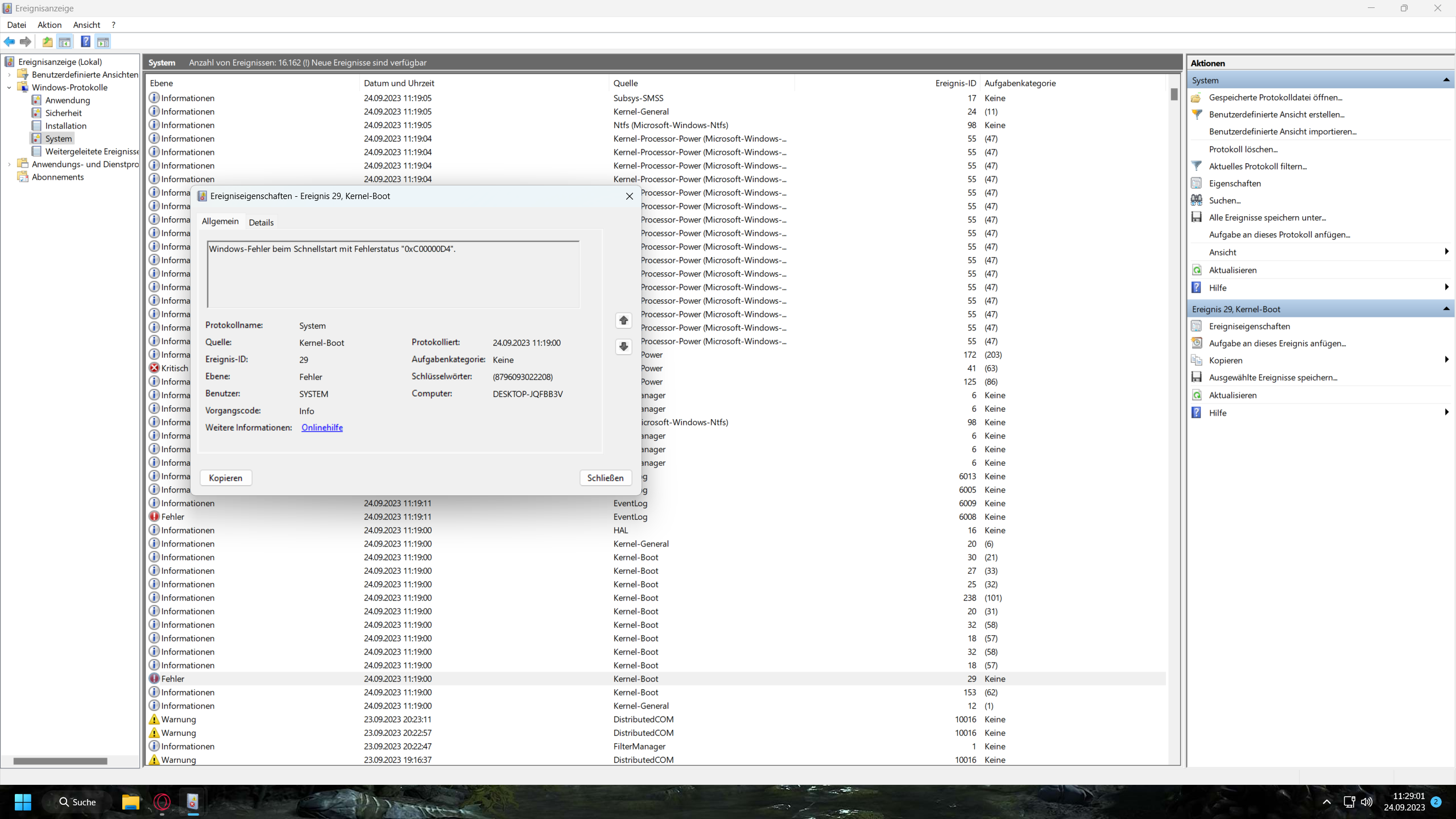 Kernel Boot - Windows-Fehler beim Schnellstart mit Fehlerstatus "0xC00000D4".
