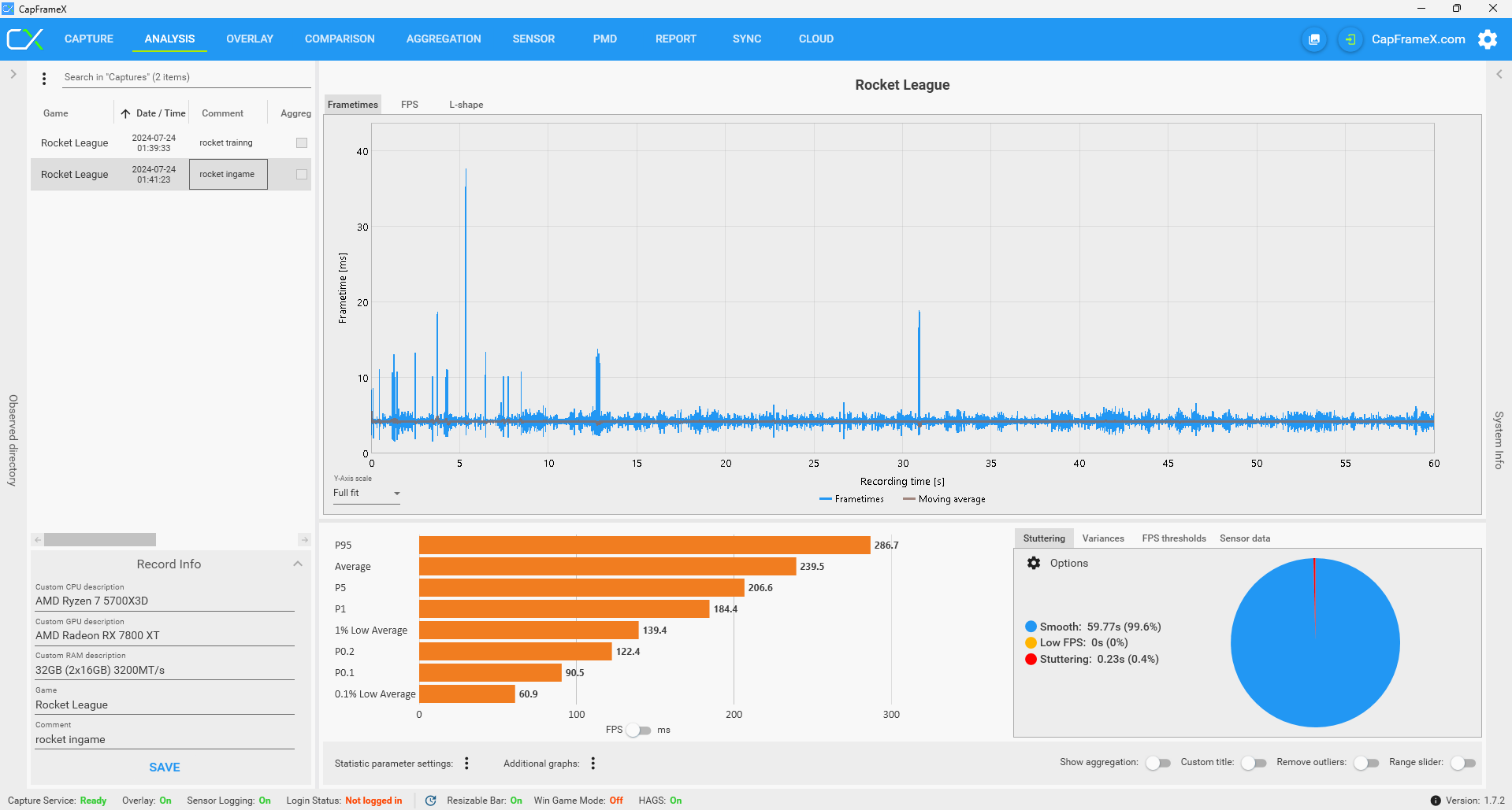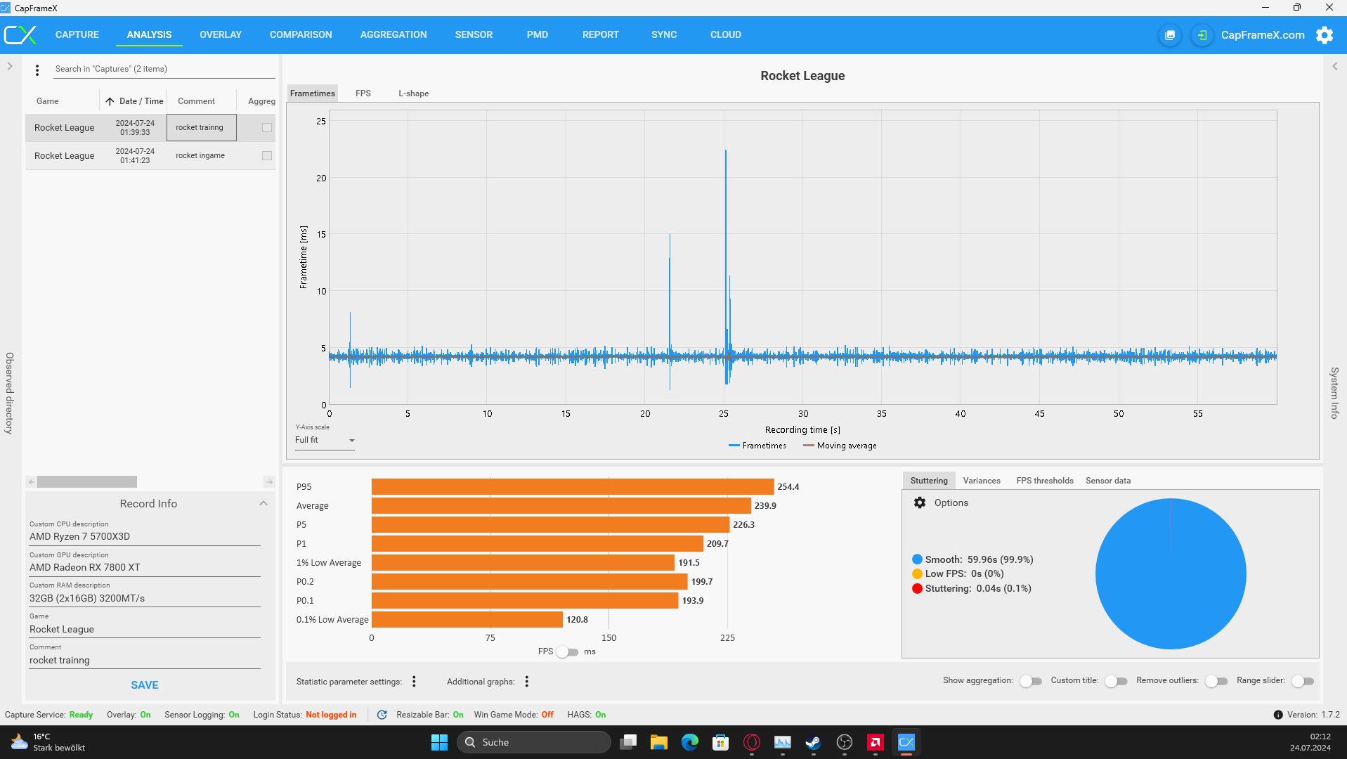 So hier ist wie gewünscht alle möglichen daten vom pc. Und auswertungen von CapFrameX.