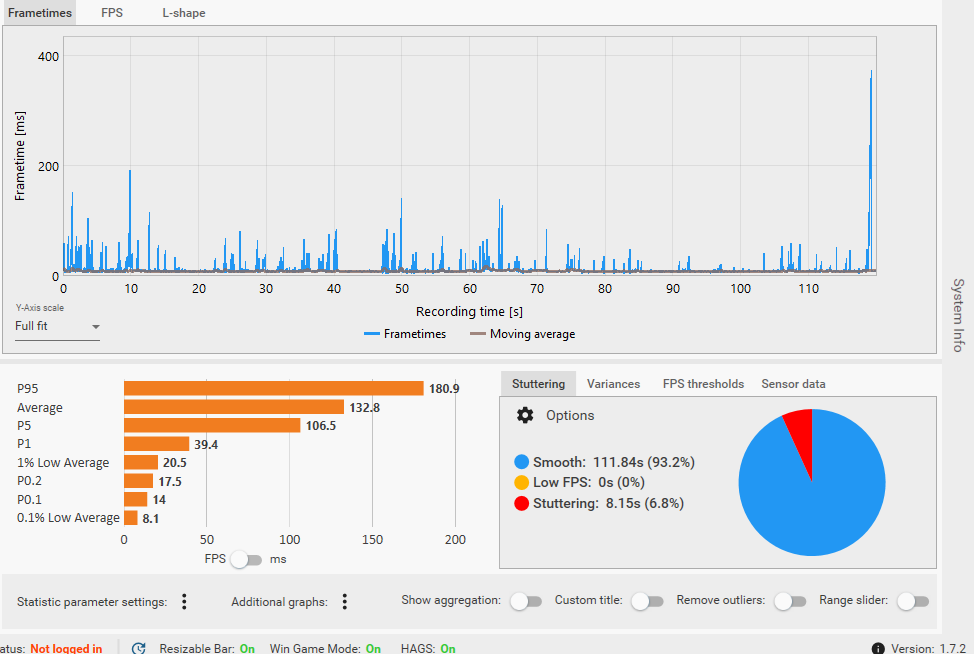 Aktuell rennst du bei den 90s FN ins GPU und das CPU Limit. Was sind denn deine Einstellungen? Versuch mal bei dx12 die Frames auf 120 zu limitieren und schau dann nochmal.