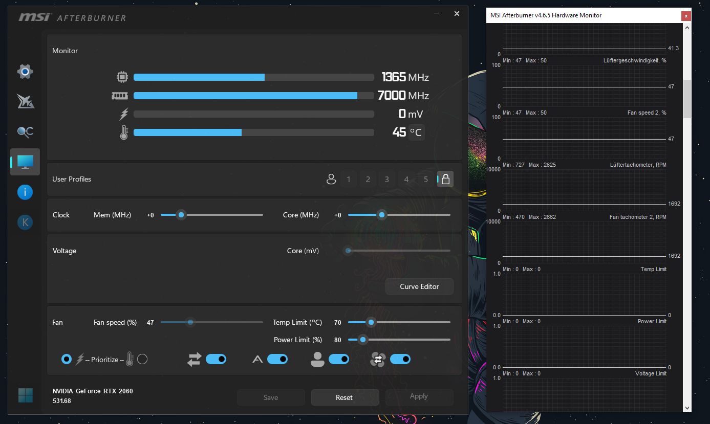 Probiere ich momentan aus und bis jetzt noch nichts passiert.Fachlaie schrieb:Teste mal die Grafikkarte auf 80-50% Powerlimit.