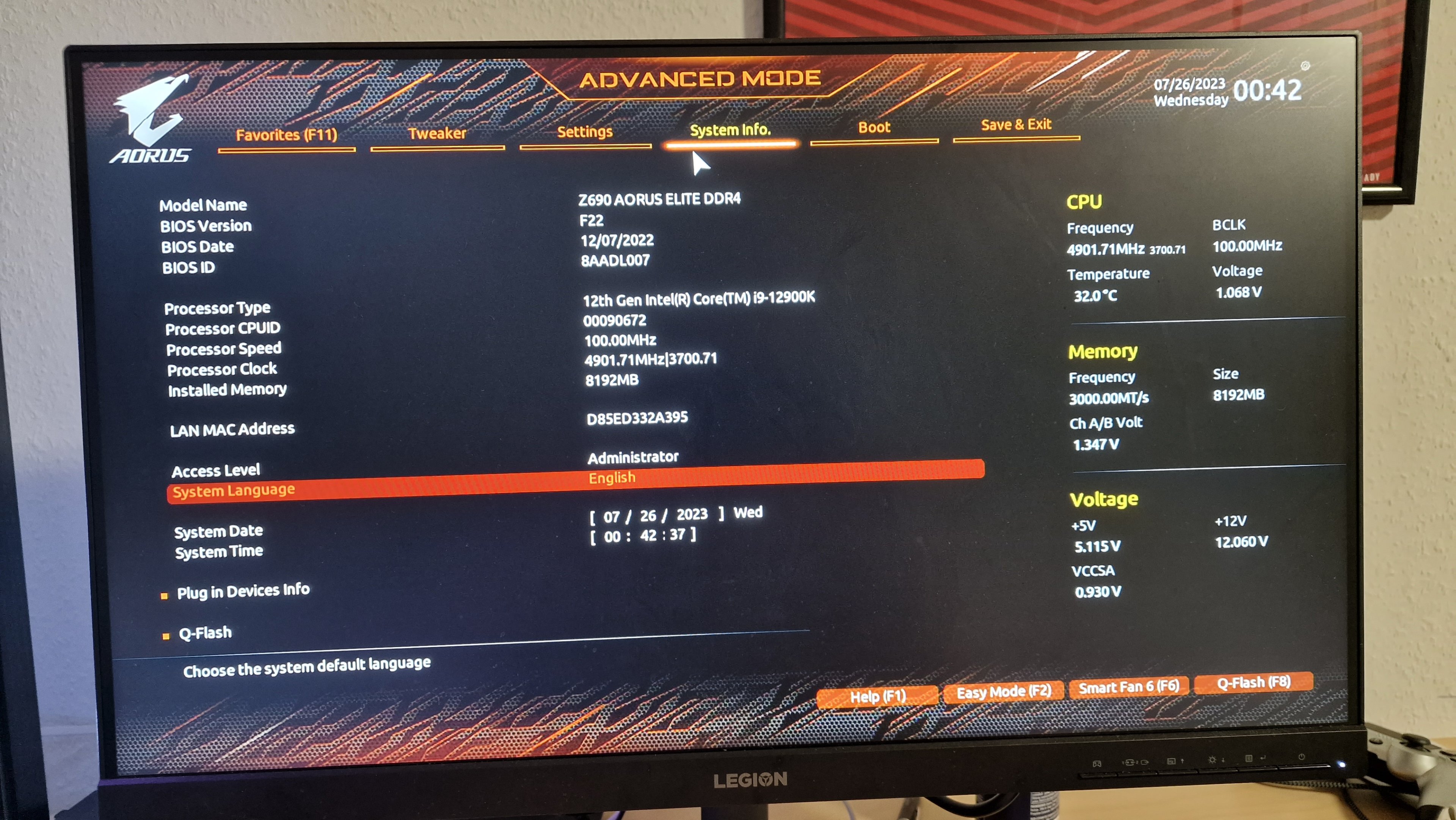Bios habe ich über die Batterie schon zurückgesetzt, dort läuft alles auf standard settings.
