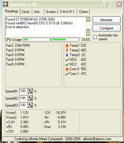 Hardware ist unverändert wie e und je läuft eigentlich seit 2 Jahren Problemlos. Netzteilwerte in Speedfan und BIOS sind absolut oki. Netzteil ist ein Termaltake 470Watt also mehr als genug stark.