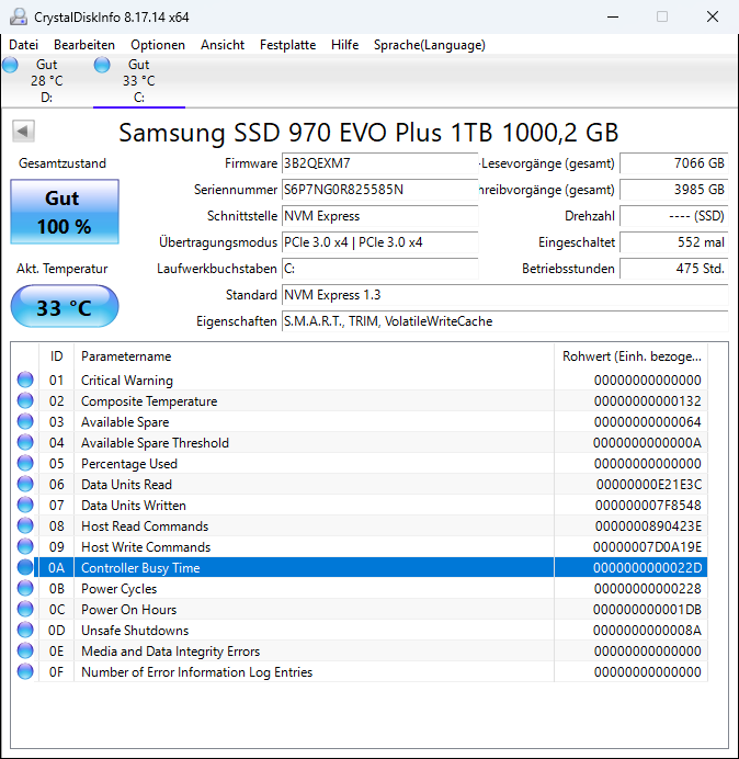 - HDD / SSD: 1TB Samsung 970 Evo Plus M.2 2280 PCIe 3.0