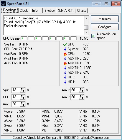 Das Analyseprogramm SpeedFan gibt mir schon einen kleinen Schock: