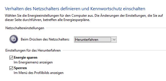 seitdem ich auf Windows 10 umgestiegen bin habe ich folgendes Problem mit meinem Computer, sobald ich auf Herunterfahren gehe kommt zwar die Meldung von Windows das es nun herunterfährt und es schalten sich dann auch Bildsignal, USB-Geräte und die SATA Geräte aus, aber die Status LED vom PC sowie die Lüfter von CPU, Grafikkarte und Gehäuse laufen weiter. Ich habe auch schon 10 Minuten in diesem Zustand gewartet, aber es tut sich einfach nichts. Einzigste Lösung ist dann halten des Power-Knopfes am Gehäuse bis der PC dann ausgehen muss.