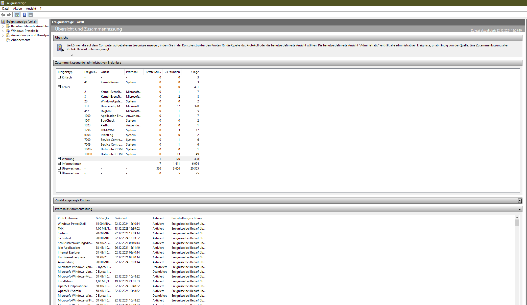 Blöd nur, wenn man zwar sieht, dass schon 7 Fehler in der letzten Std und 57 in den letzten24 Std aufgetreten sind, man aber es nicht für nötig hält das mal auf zuklappen.