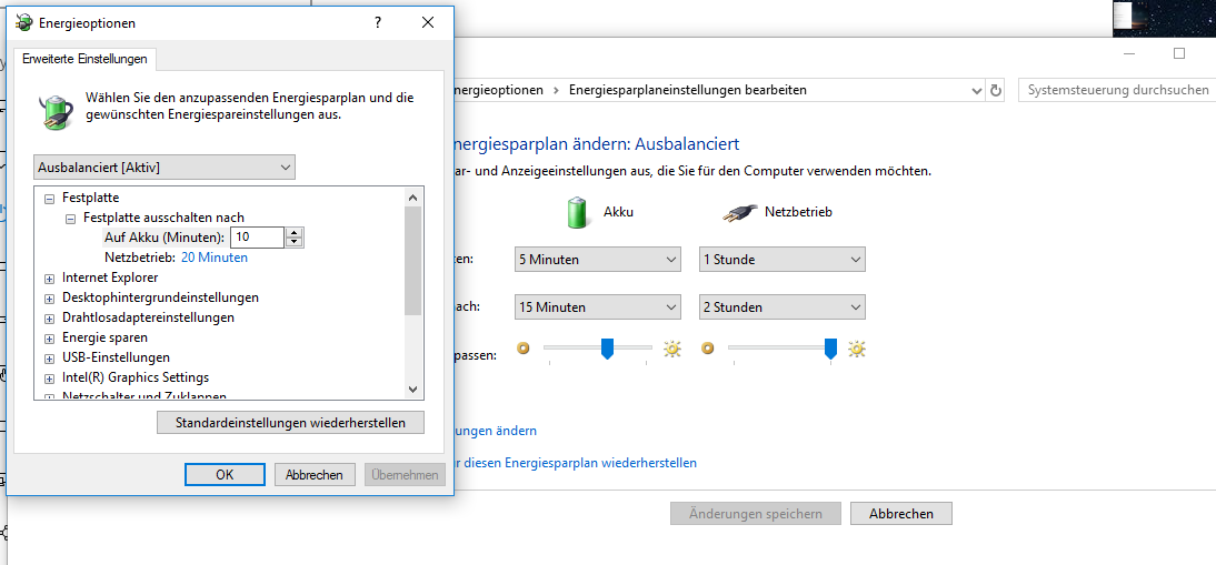 Den Energiesparmodus bzw. die Einstellungen sind "eigentlich" alle auf 60min oder so.... Aber der PC schläft schon nach 1 Minute oder so...