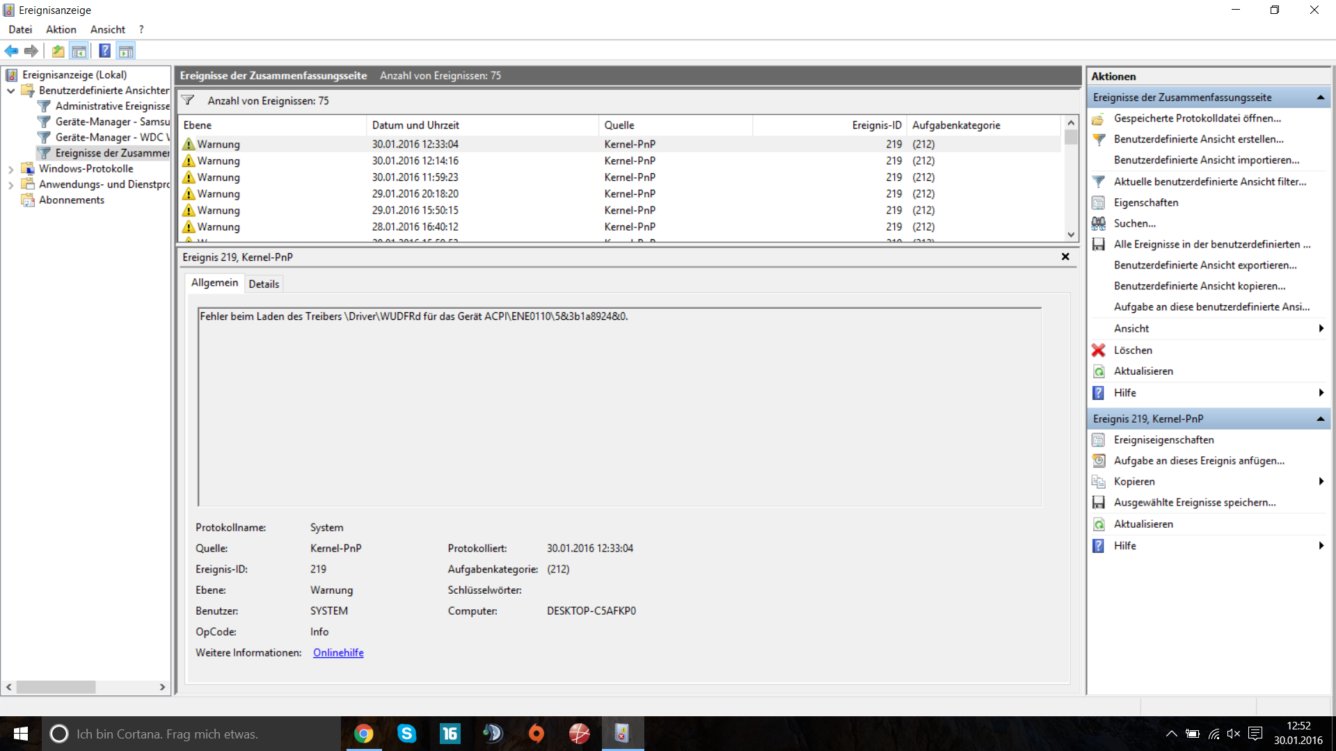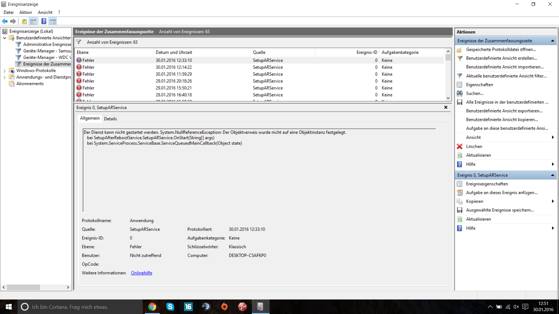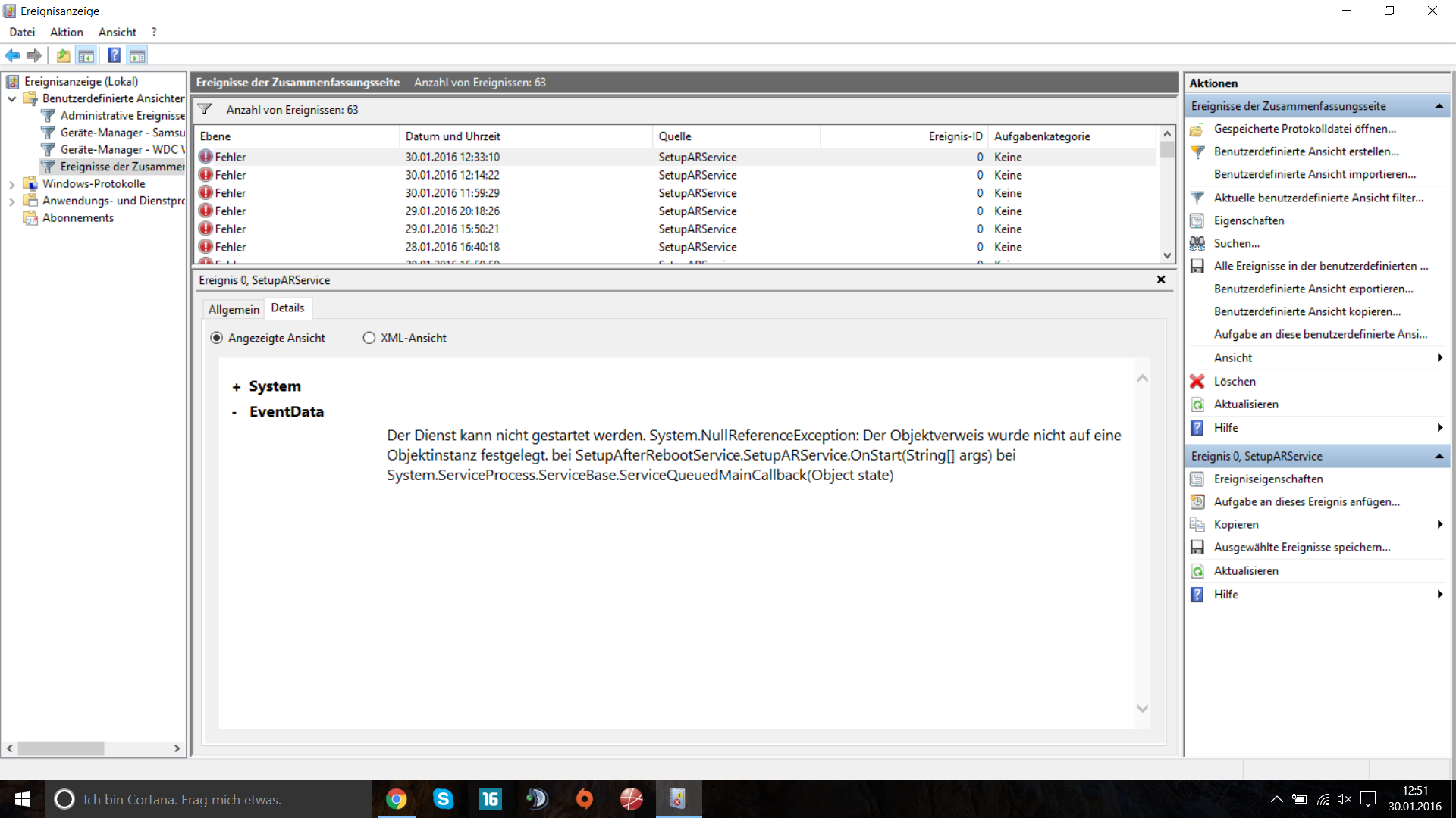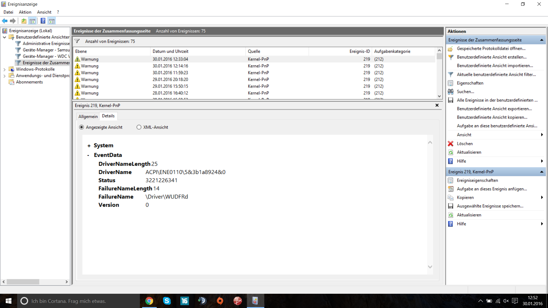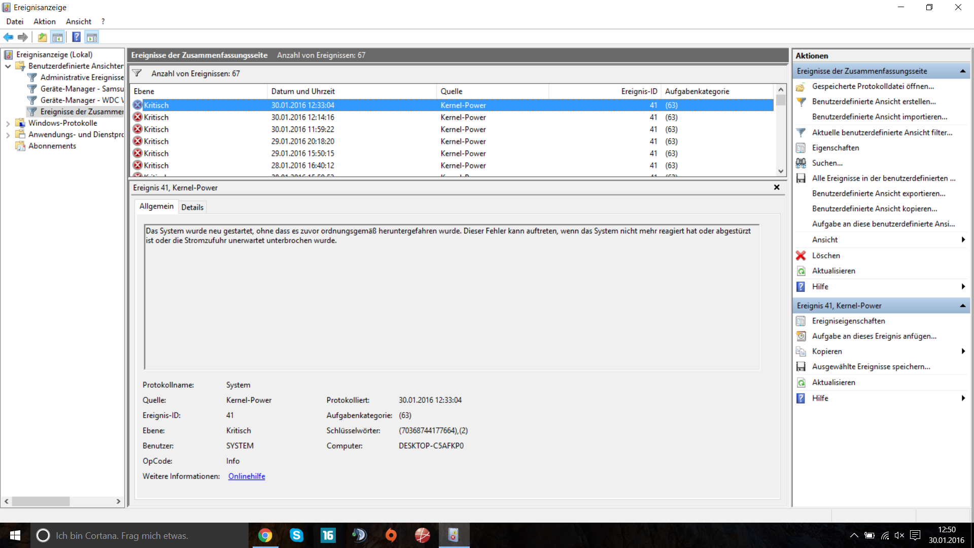 Wenn ich nach dem Absturz in die Ereignisanzeige gehe hier:
