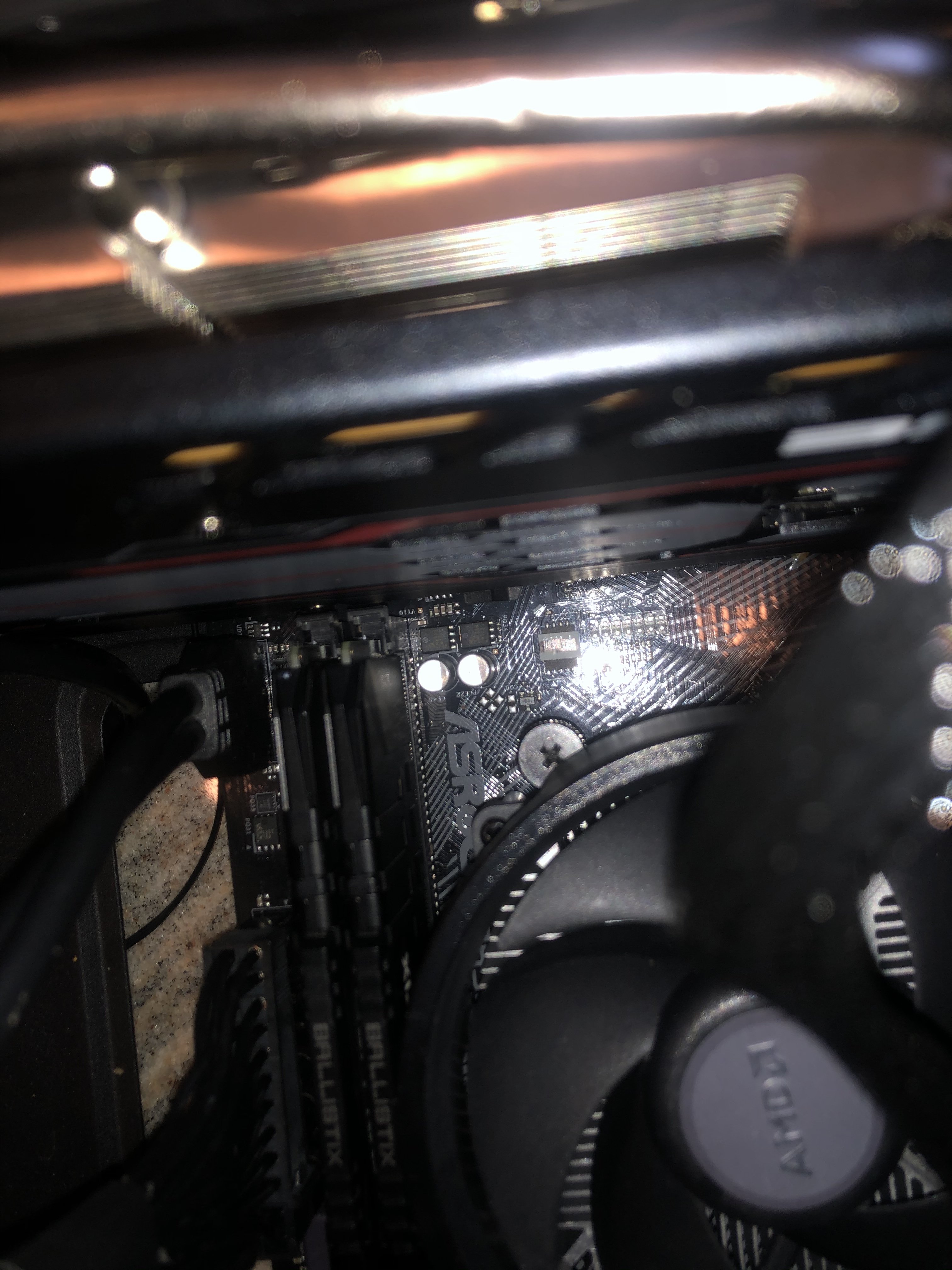Als ich den Pc angemacht habe, ging alles (Lüfter drehen sich, Grafikkarte leuchtet, RAM ist drinn, )