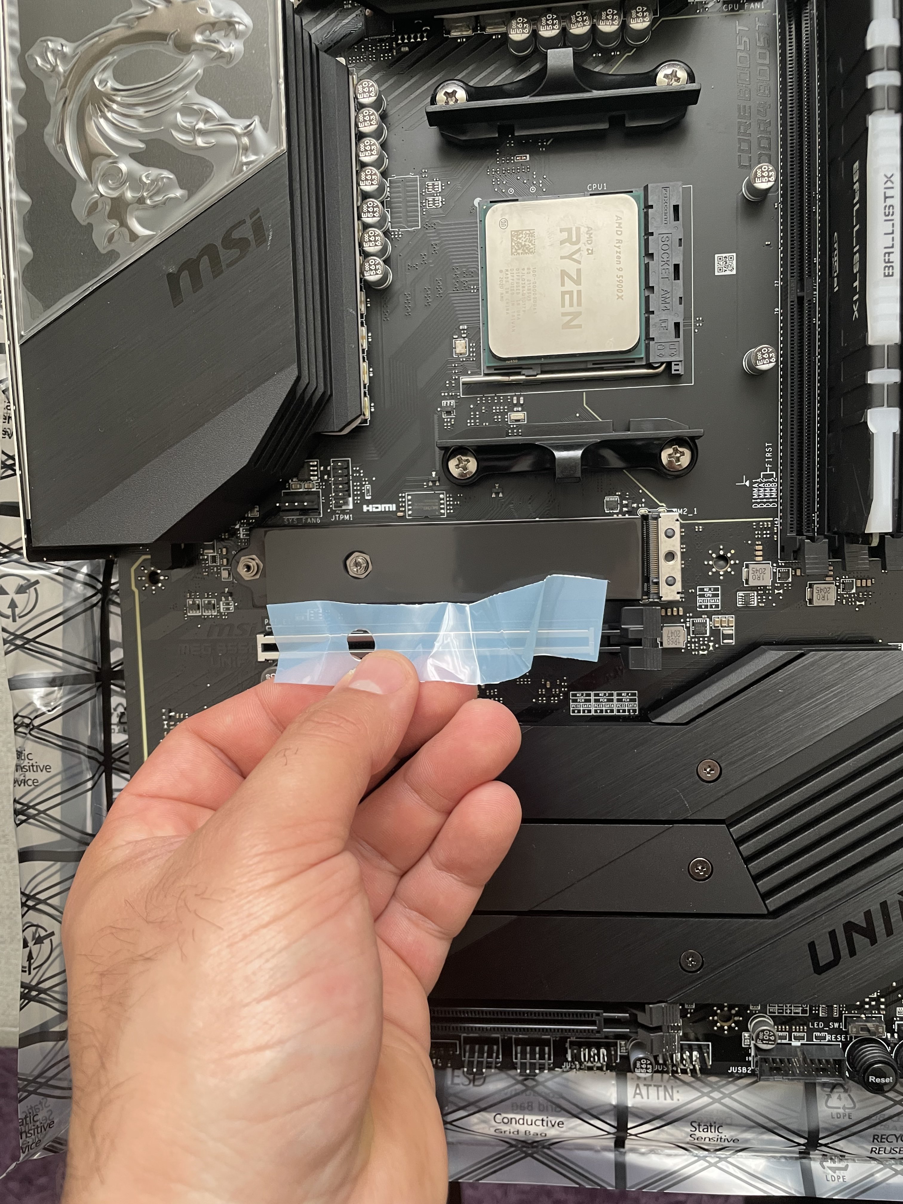 1. beim Einbau der SSD habe ich eine blaue Folie und darunter eine Art Schicht. MĂŒssen beide Schichten entfernt werden oder nur die blaue Folie? (Siehe Foto)