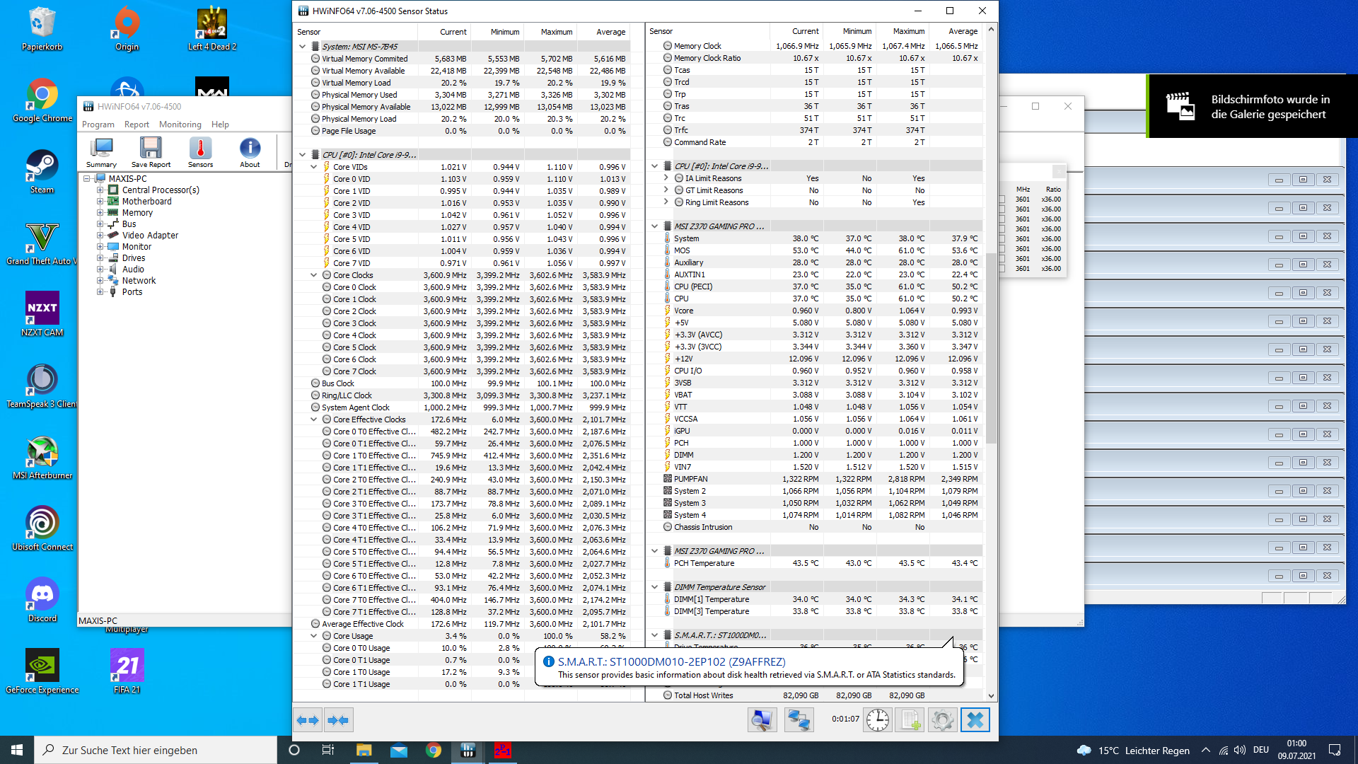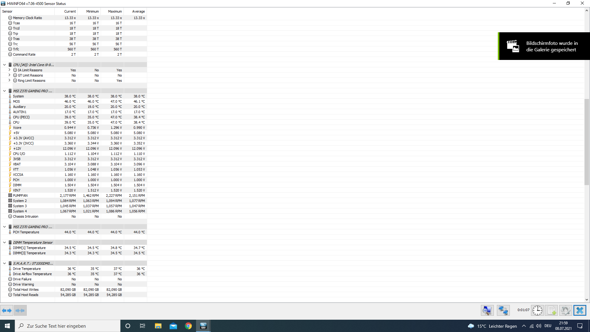 Tip: Bei HWiNFO unten links auf die beiden blauen Pfeile klicken, spart screenshots.