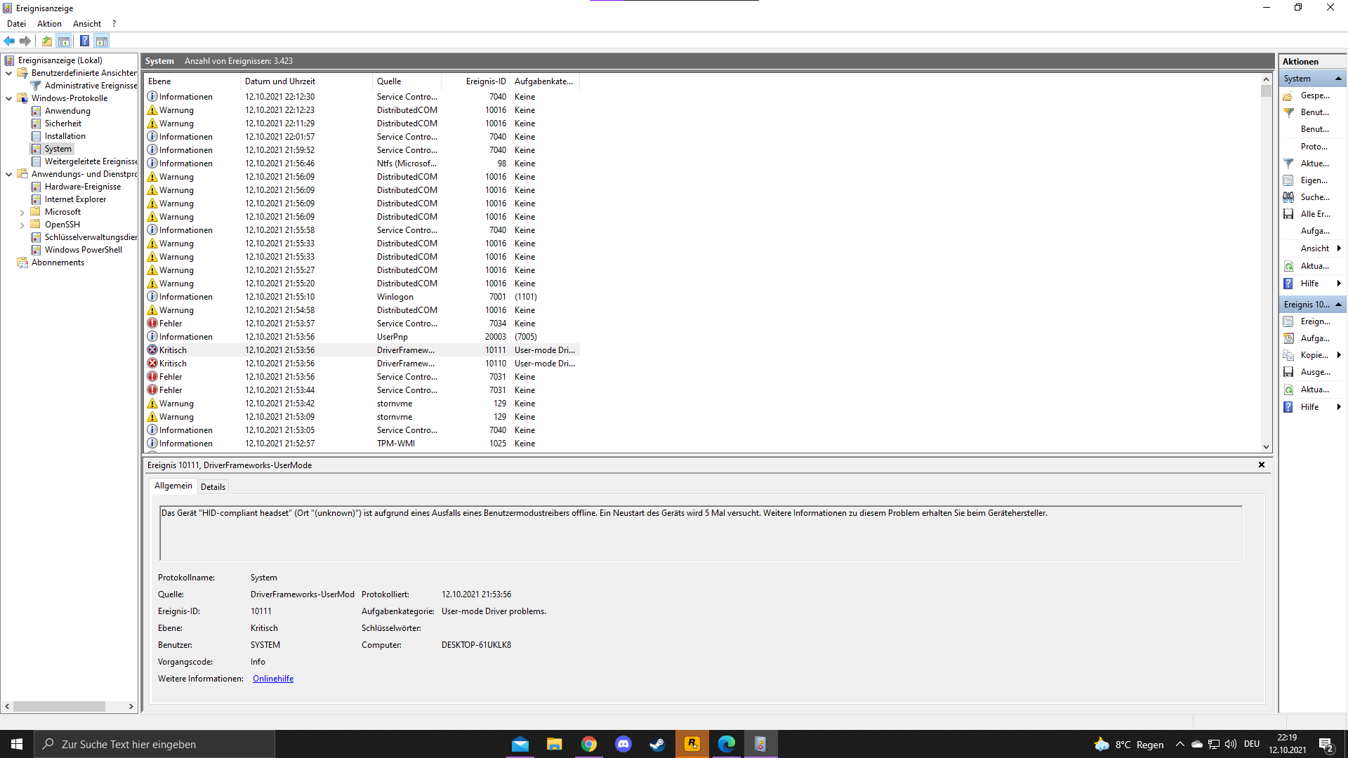 eh ja was genau HID-compliant headset ist weis ich nicht und bei dem anderen weis ich auch nichtwolve666 schrieb:Hast du mal in die Ereignisanzeige von Windows geschaut