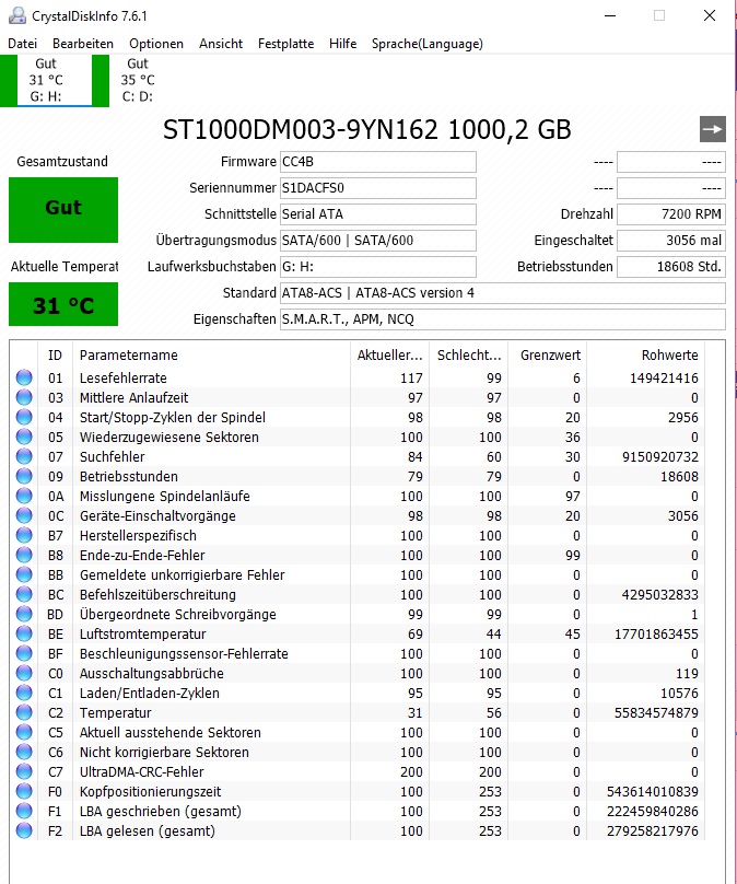 Was mir noch einfällt, die HDD hat vor dem Wechsel zur SSD rumgespackt, weswegen ich sie dann letztlich auch nicht mehr als Systemplatte nutze, sie ist noch drinnen und hält als Archiv her.