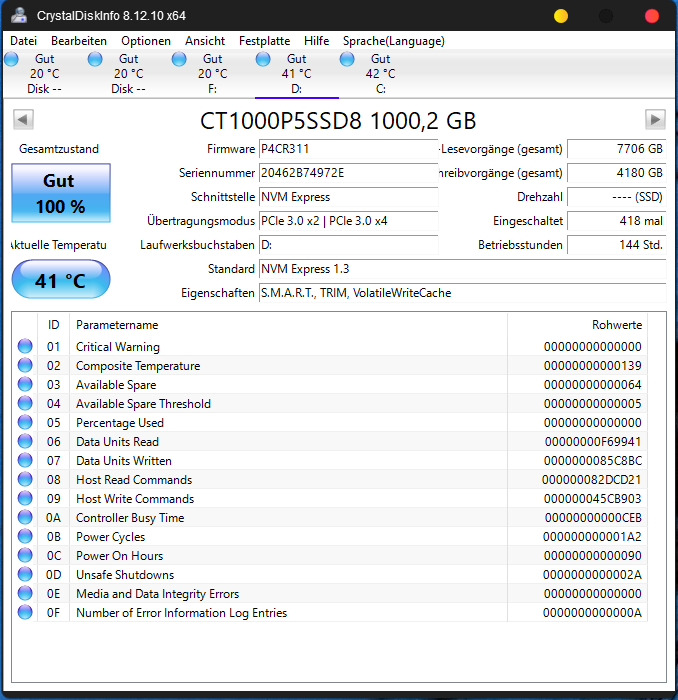 Speicher: 2x1TB Crucial P5, 1TB HDD