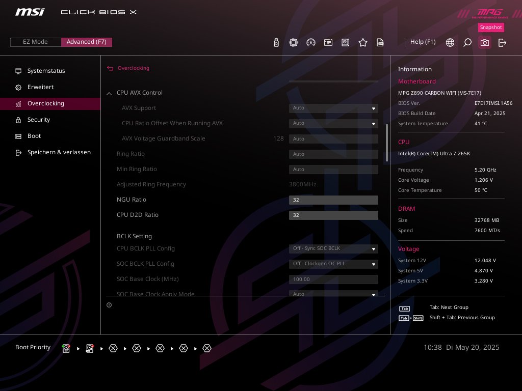 MSI Z890 Gaming Carbon (aktuelles Bios)