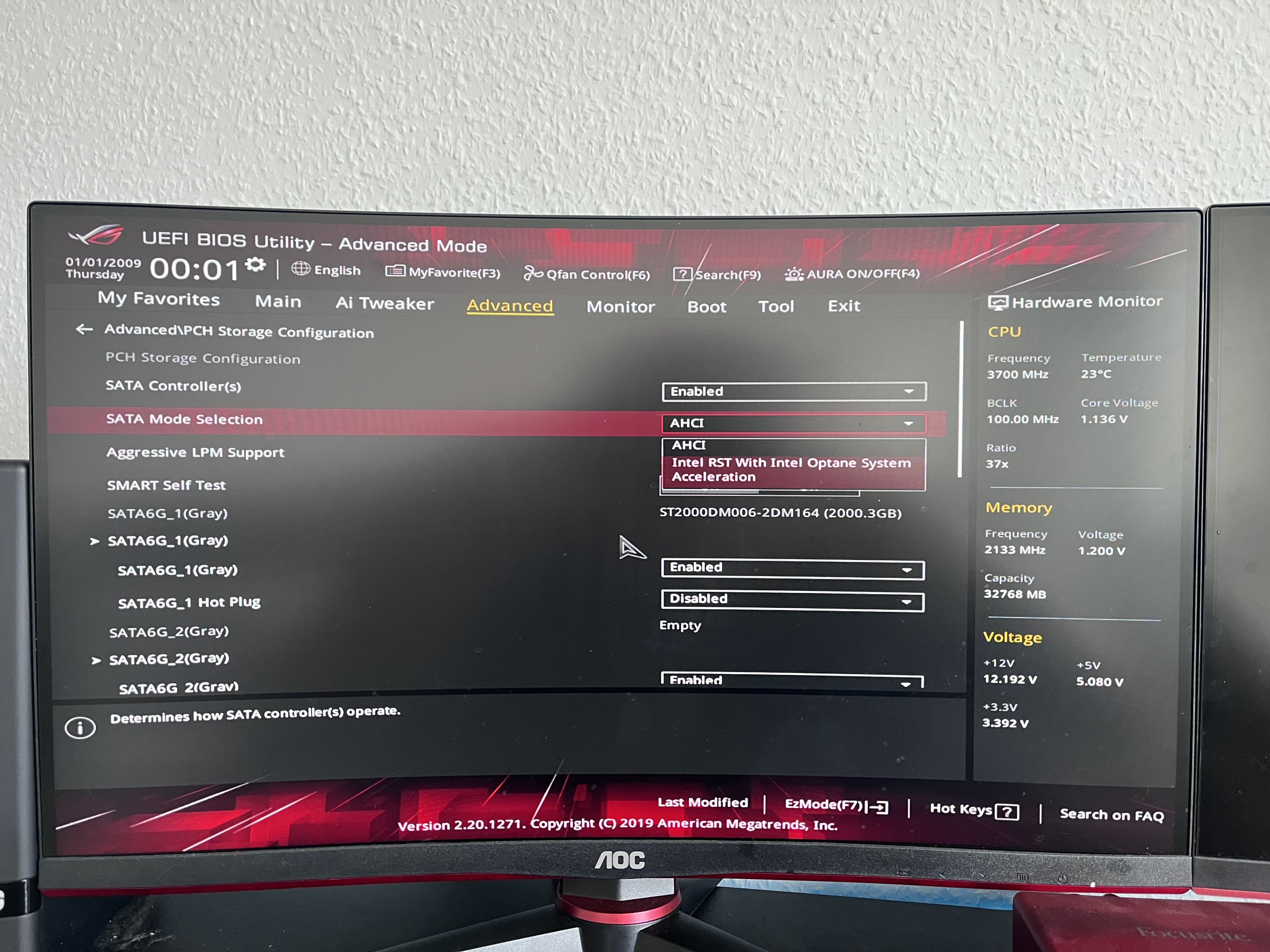 Auf dem Bildschirm werde ich ja dazu aufgefordert den SATA Modus auf Intel Optane Memory oder RAID zu konfigurieren.