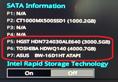 Genau, Windows ist auf der Intel nvme, ich glaube sie ist dort nicht gelistet, weil sie nicht über SATA drin ist, sondern halt über nen PCIe slot. Ich glaube sie wurde in der Liste niemals angezeigt. Wie gesagt, der Rechner läuft seit Jahren unverändert. Heute morgen ausgemacht, zwei Stunden später angemacht und ich hatte das Problem. Sowas kenne ich bisher praktisch tatsächlich nur von nem RAM defekt. Die werde ich nachher mal durchtesten.
