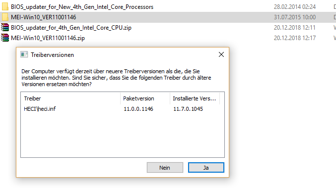 Daraufhin habe ich die Intel MEI Software direkt bei Asus heruntergeladen und beim Installationsvorgang bekomme ich diese Meldung (siehe Bild 2).