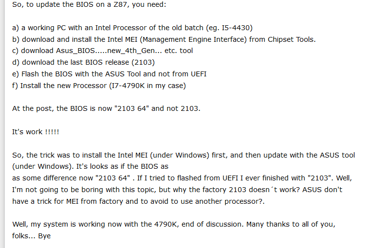 Er hat zuerst die Management Firmware aktualisiert (2.00.02) und dann das Bios über das Asus Tool aktualisiert.