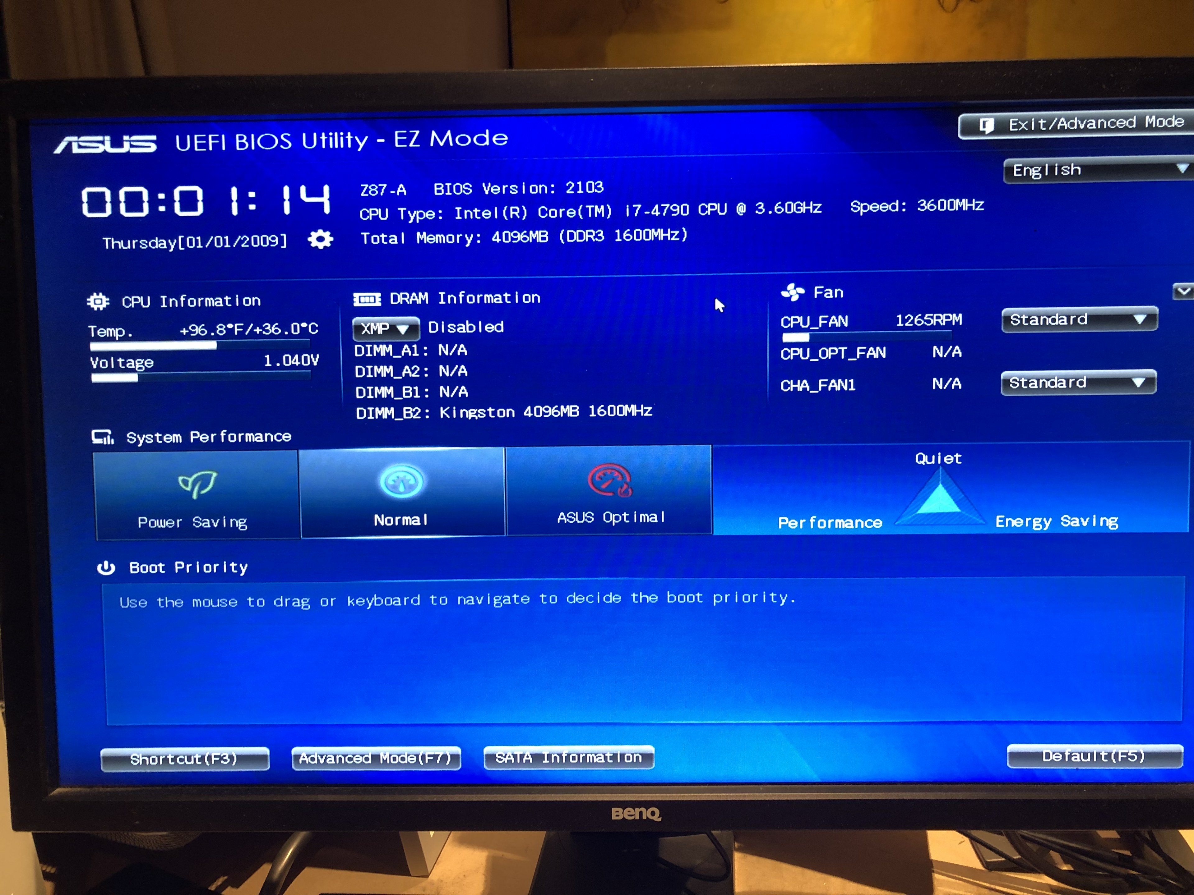 Es handelt sich um ein Mainboard von Asus Z87-A. Wenn es mit diesem Board ebenfalls nicht funktioniert dann ist die CPU vermutlich defekt.