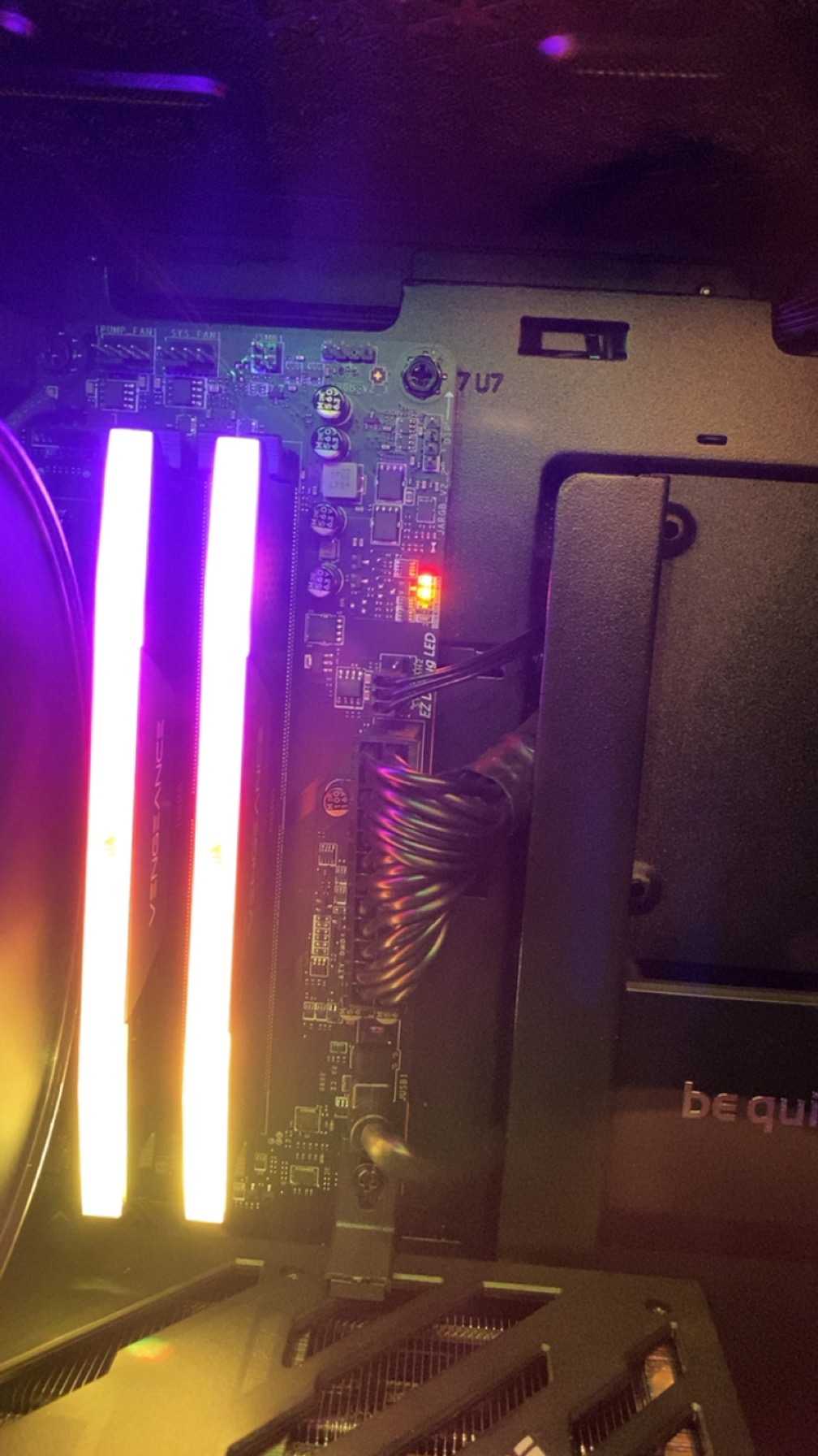 Der PC startet ganz normal jedoch kommt kein Bild am Monitor an und die rote LED mit der CPU Aufschrift am Mainboard leuchtet.