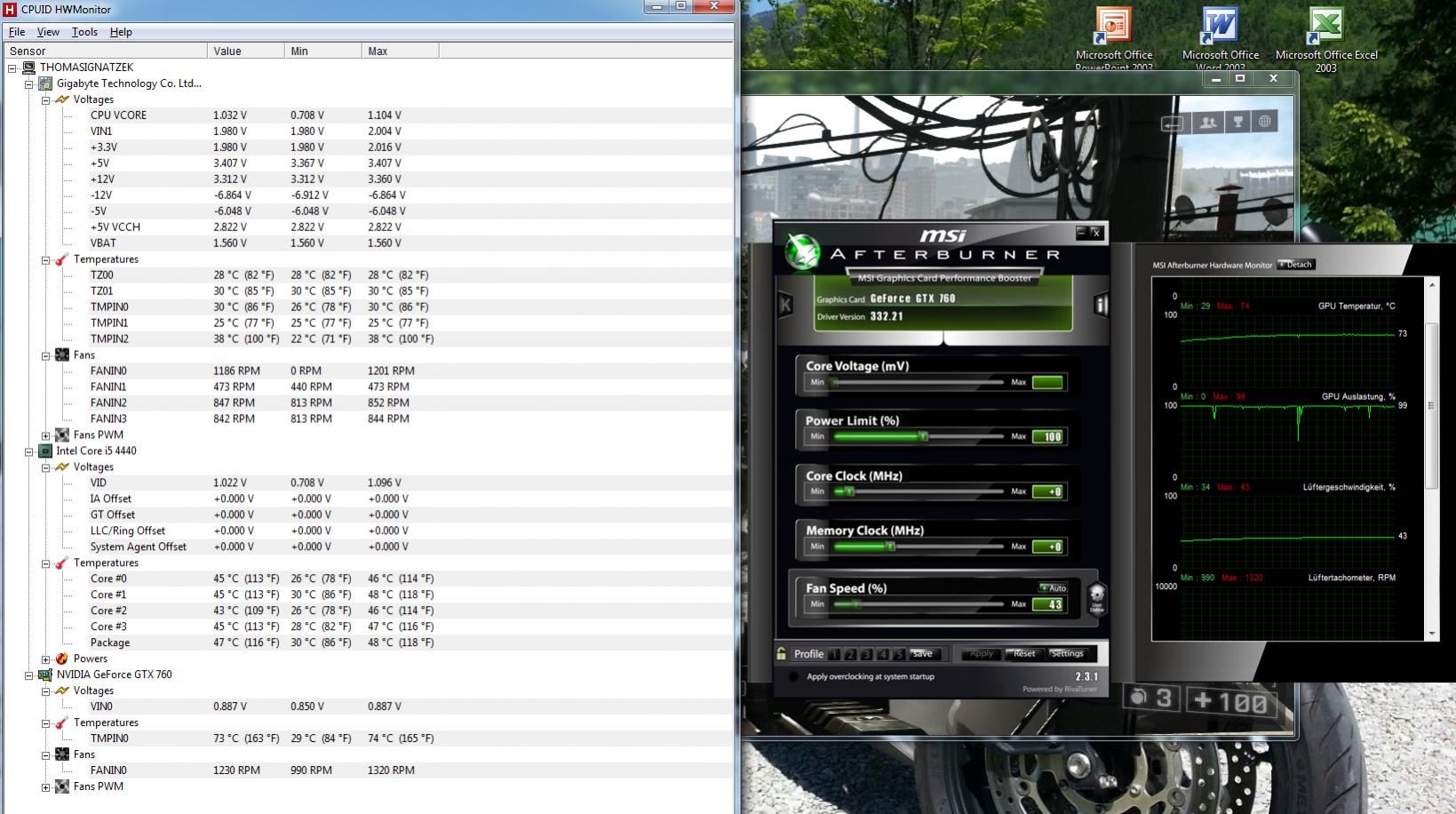- Die CPU Temperatur lag bei etwa 50°C und die der GPU bei knapp 72 (Auslastung GPU bei 99%)