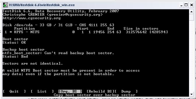 6. Versucht den Bootsektor wieder herzustellen-> ging nicht (Testdisk [Org.Bios])