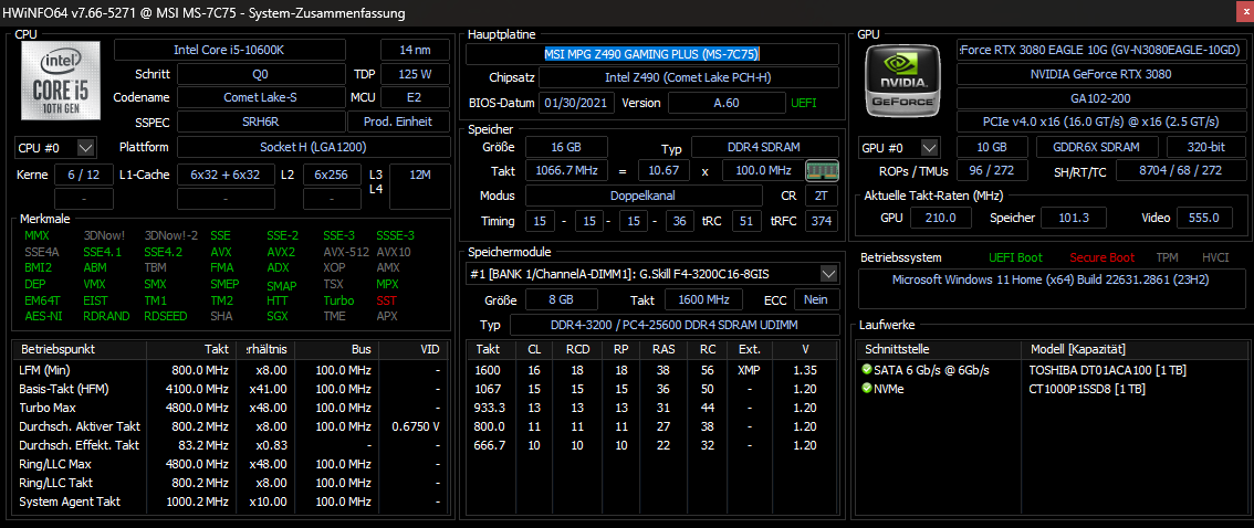Motherboard: MSI MPG Z490 GAMING PLUS (MS-7C75)
