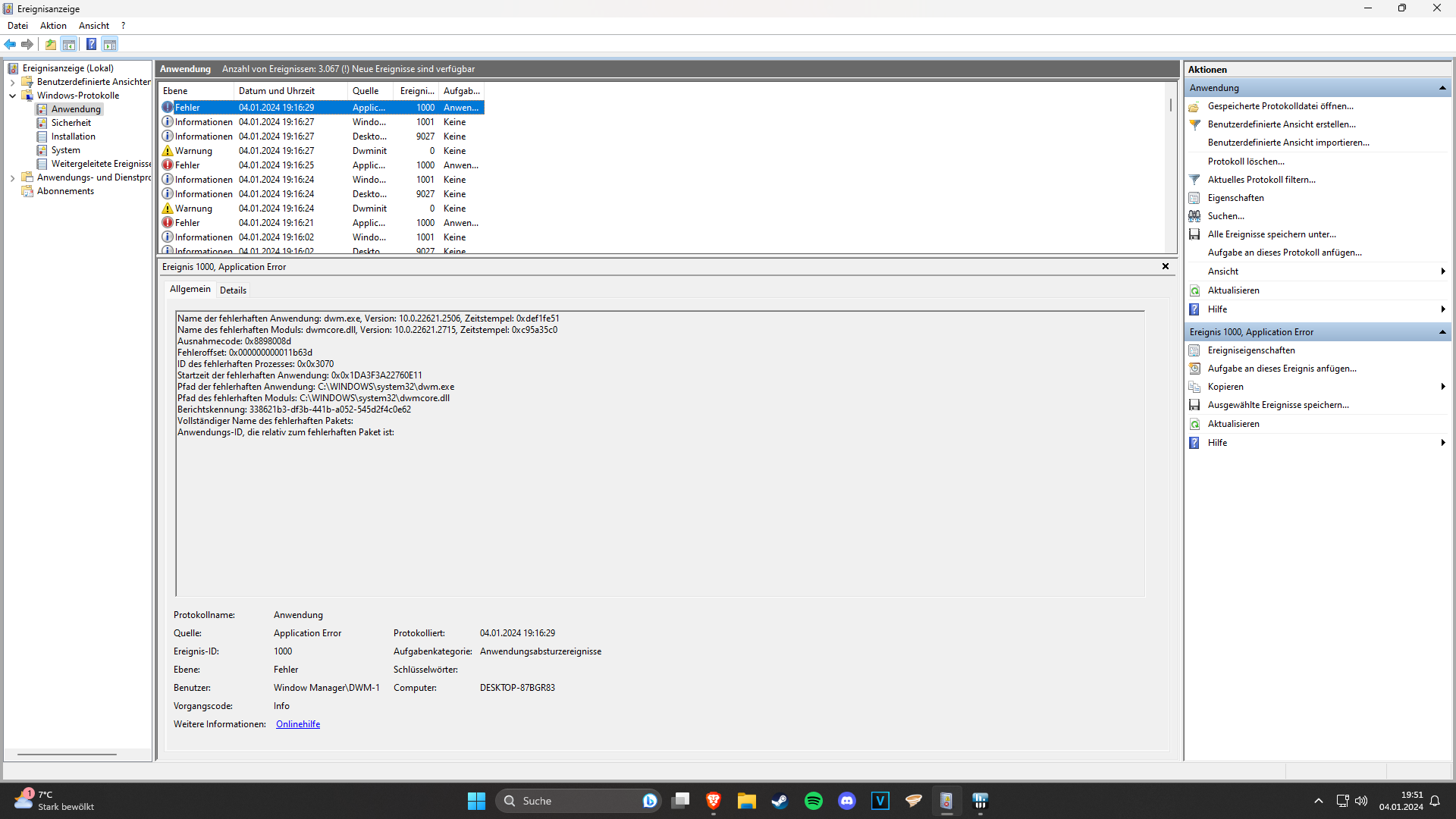 Pfad der fehlerhaften Anwendung: C:\WINDOWS\system32\dwm.exe