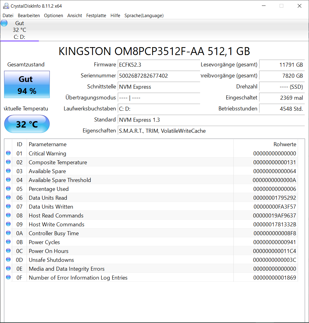 scheinen auch in ordnung zu sein...Restart001 schrieb:https://www.computerbase.de/downloads/systemtools/festplatten/crystaldiskinfo/