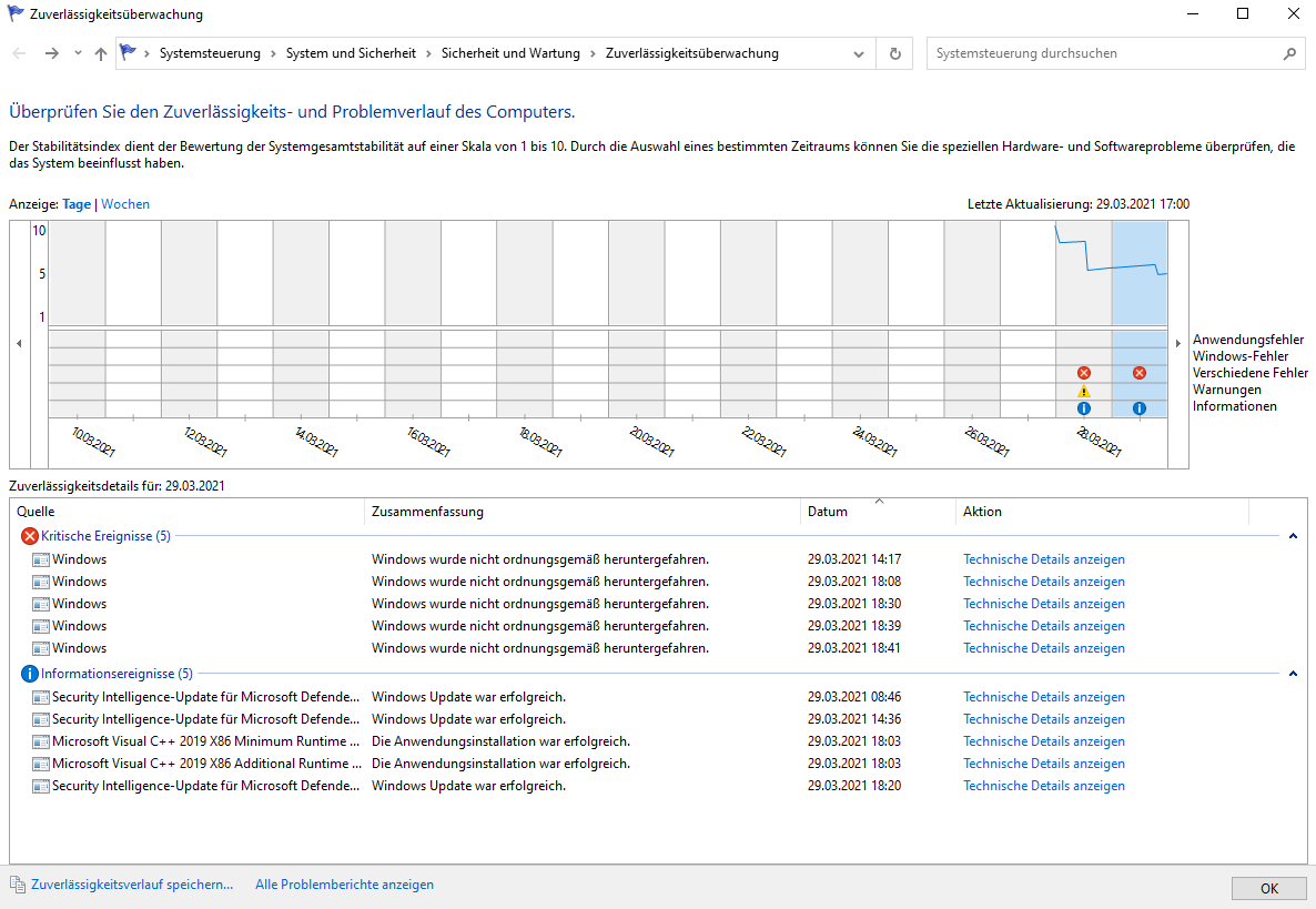 Bekomme keine Fehlermeldung/Bluescreen etc. angezeigt.
