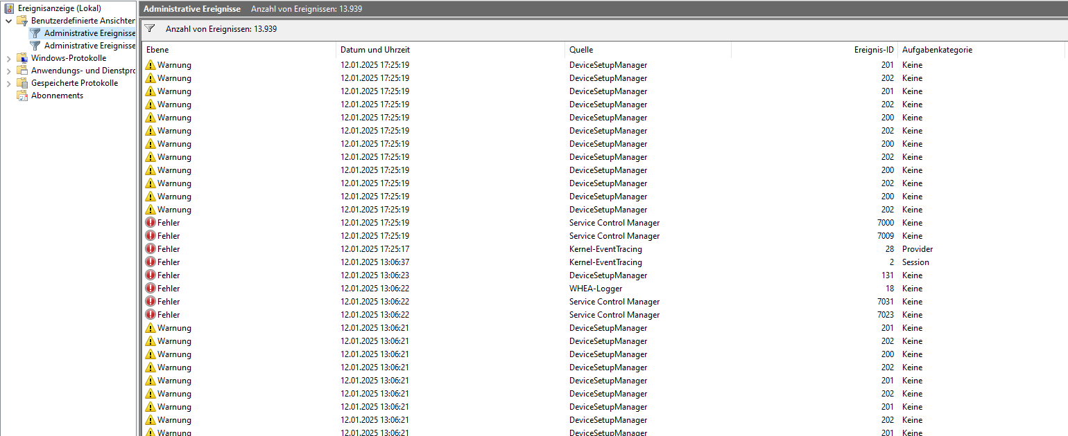 Ich habe Bilder vom Eventlog, task manager und HWMonitor angehangen.